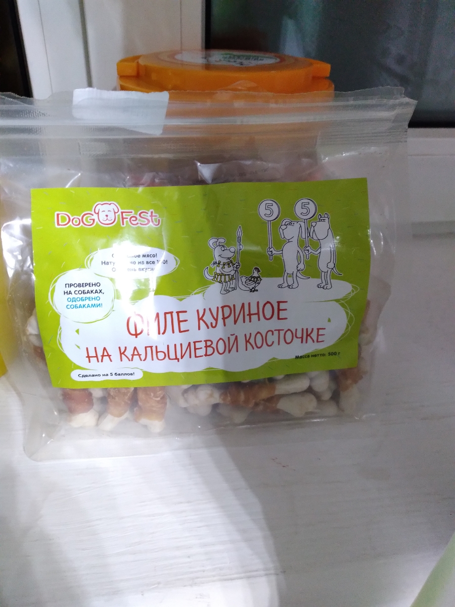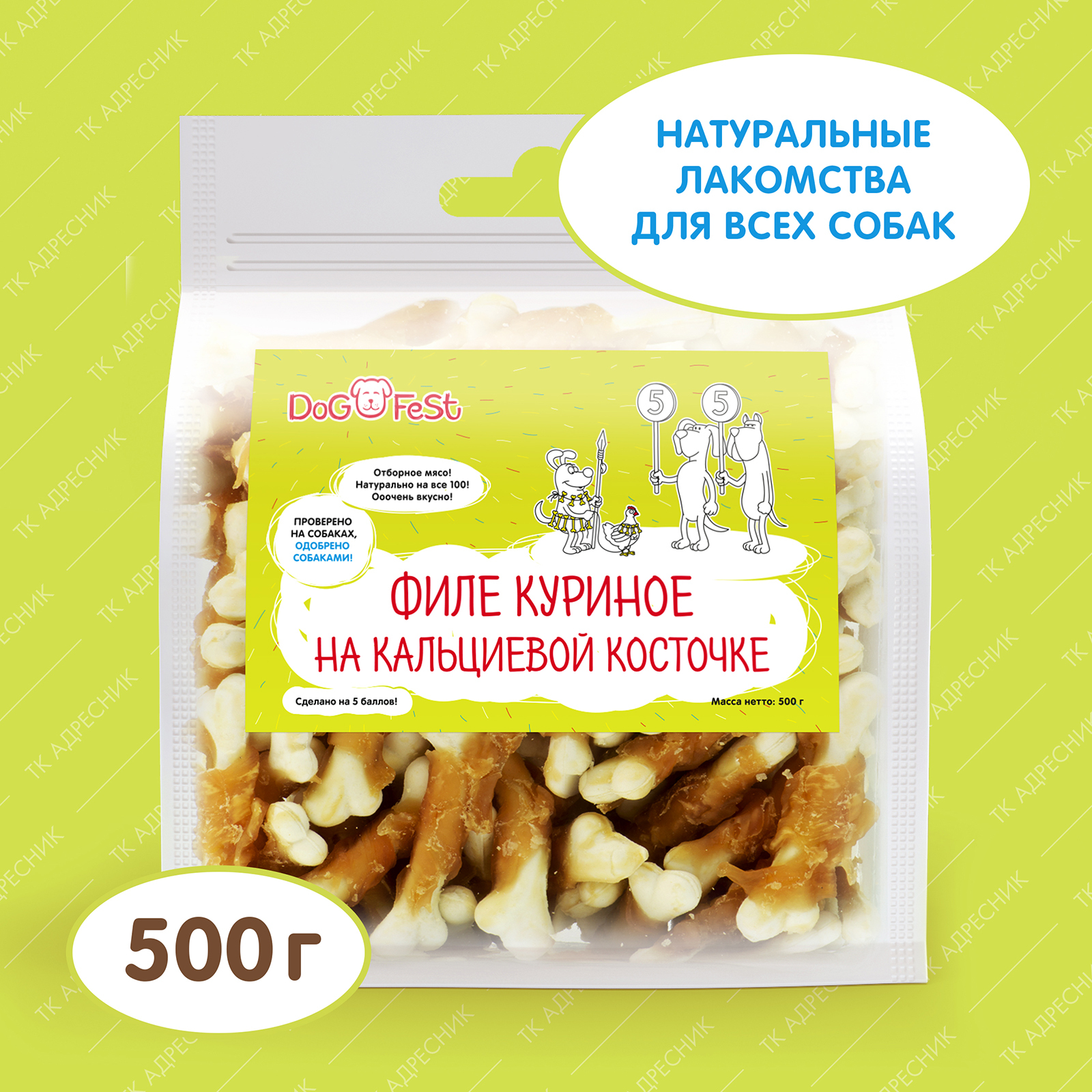 Лакомство для собак Dog Fest "Филе куриное на кальциевой косточке", 500 гр.