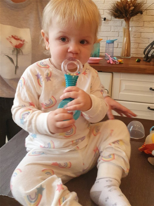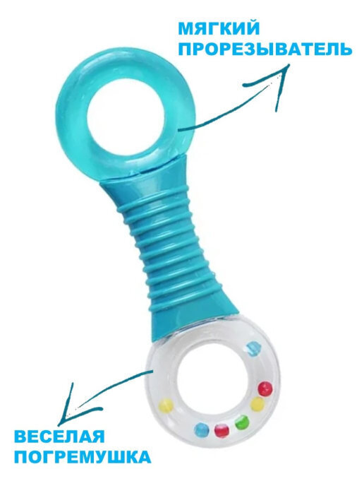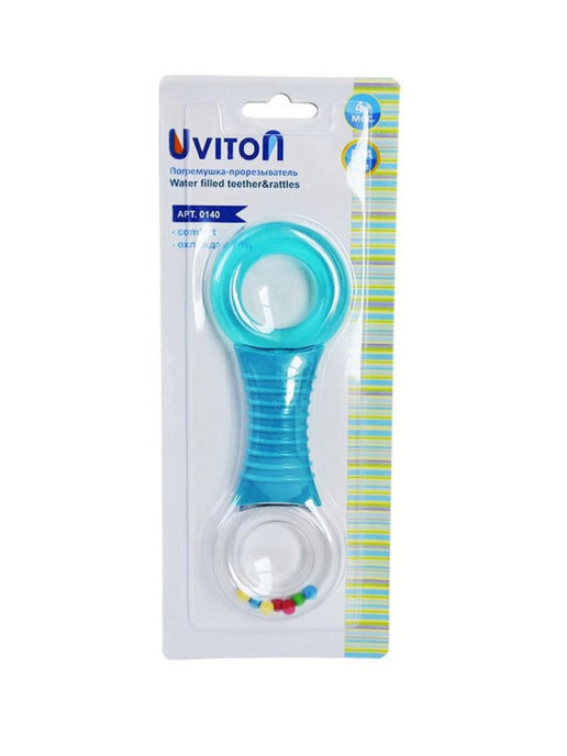 Uviton / Погремушка прорезыватель/для детей "Гантелька"/рельефная с водой внутри, цвет мята