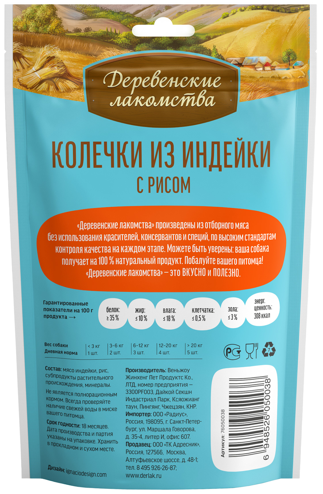 Лакомство для щенков "Деревенские лакомства" Колечки из индейки, 85 гр.