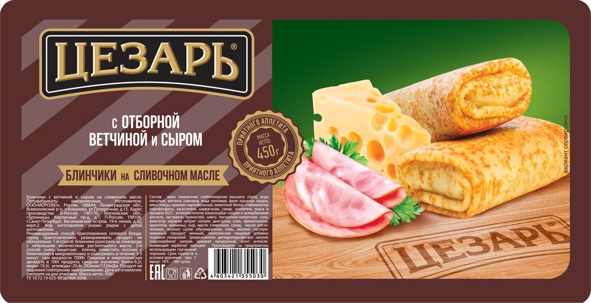 Блинчики с ветчиной и сыром Цезарь, замороженные, 450 г