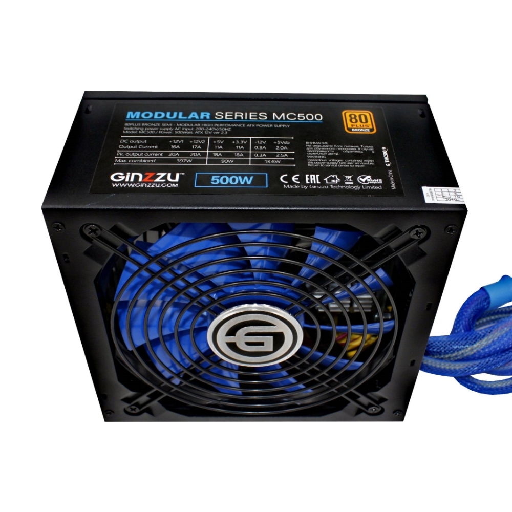 Блок питания Ginzzu MC500 14CM 80 PLUS Bronze модульный. Гарантия 5 лет.