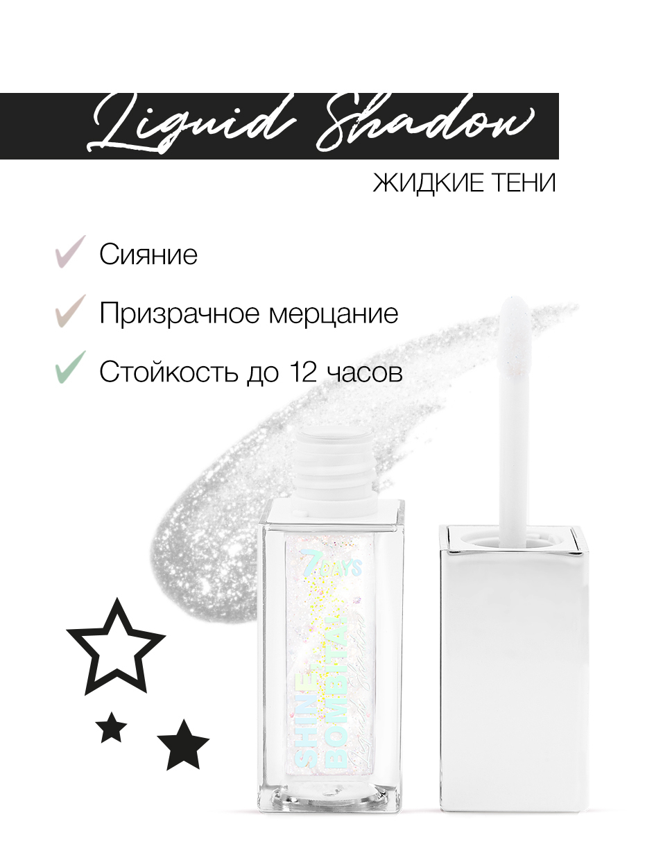 7Days Голографические тени для глаз, жидкие, стойкие, с шиммером SHINE, BOMBITA! / 401 Hologram, 5,5 мл