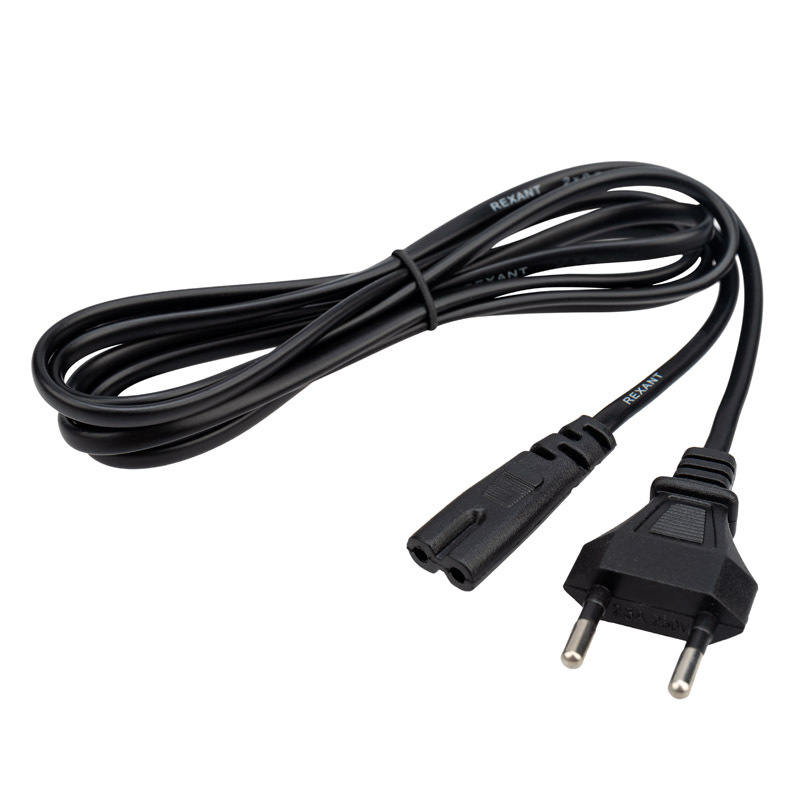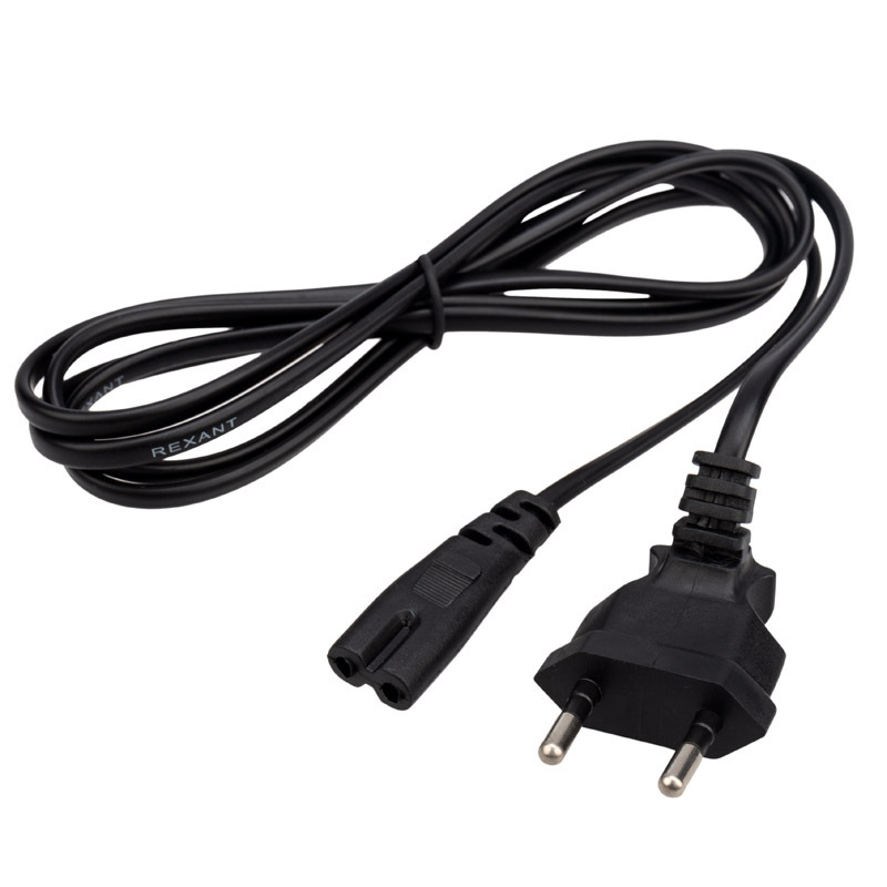 Сетевой Шнур, вилка-евроразъем С7, кабель 2x0,75 мм 1.8 м (для питания ноутбука) PE пакет, цвет: Черный