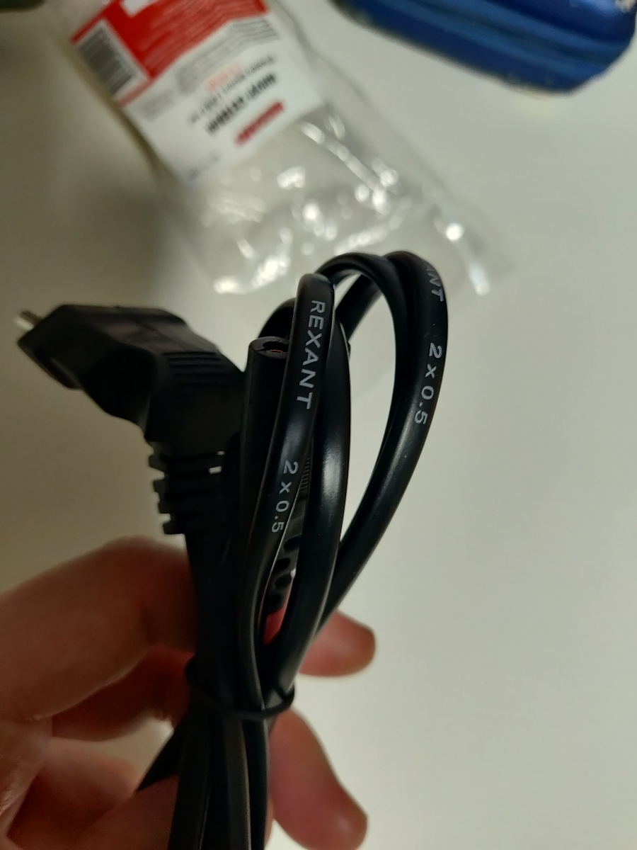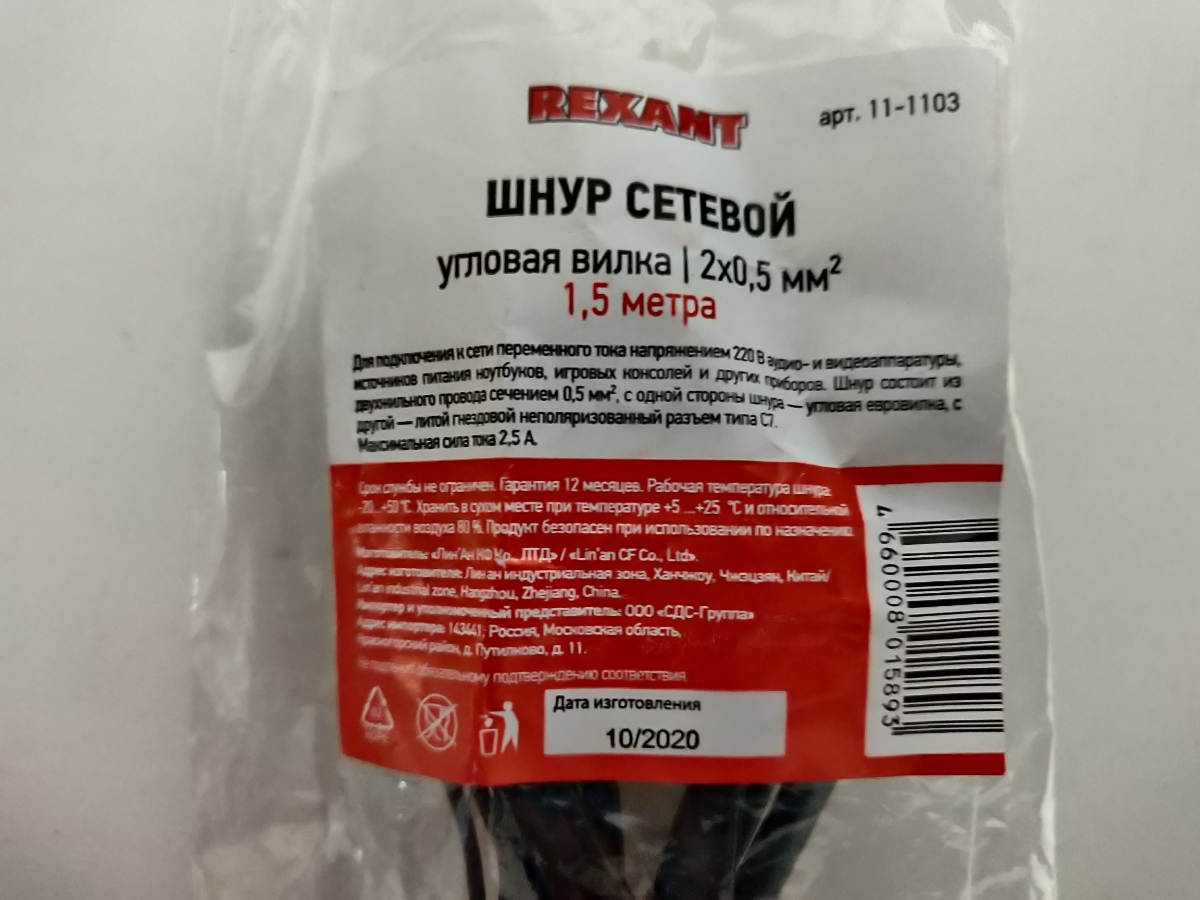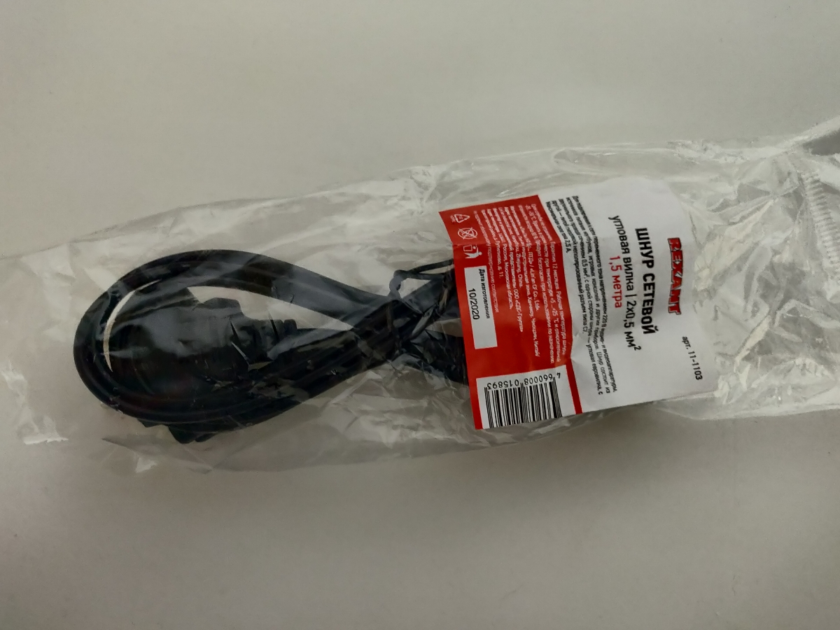 Сетевой шнур, вилка угловая-евроразъем С7, кабель 2x0,5 мм 1.5 м (для питания ноутбука) PE пакет