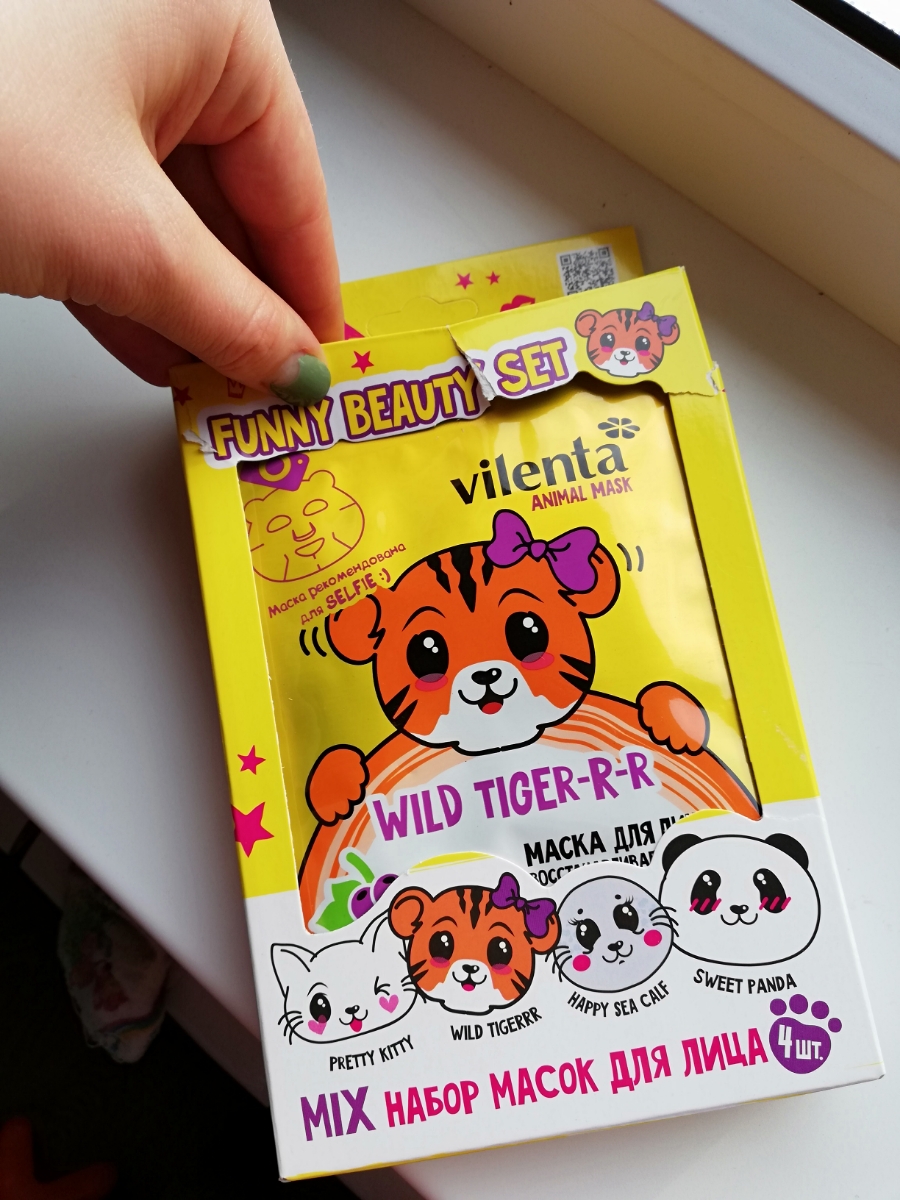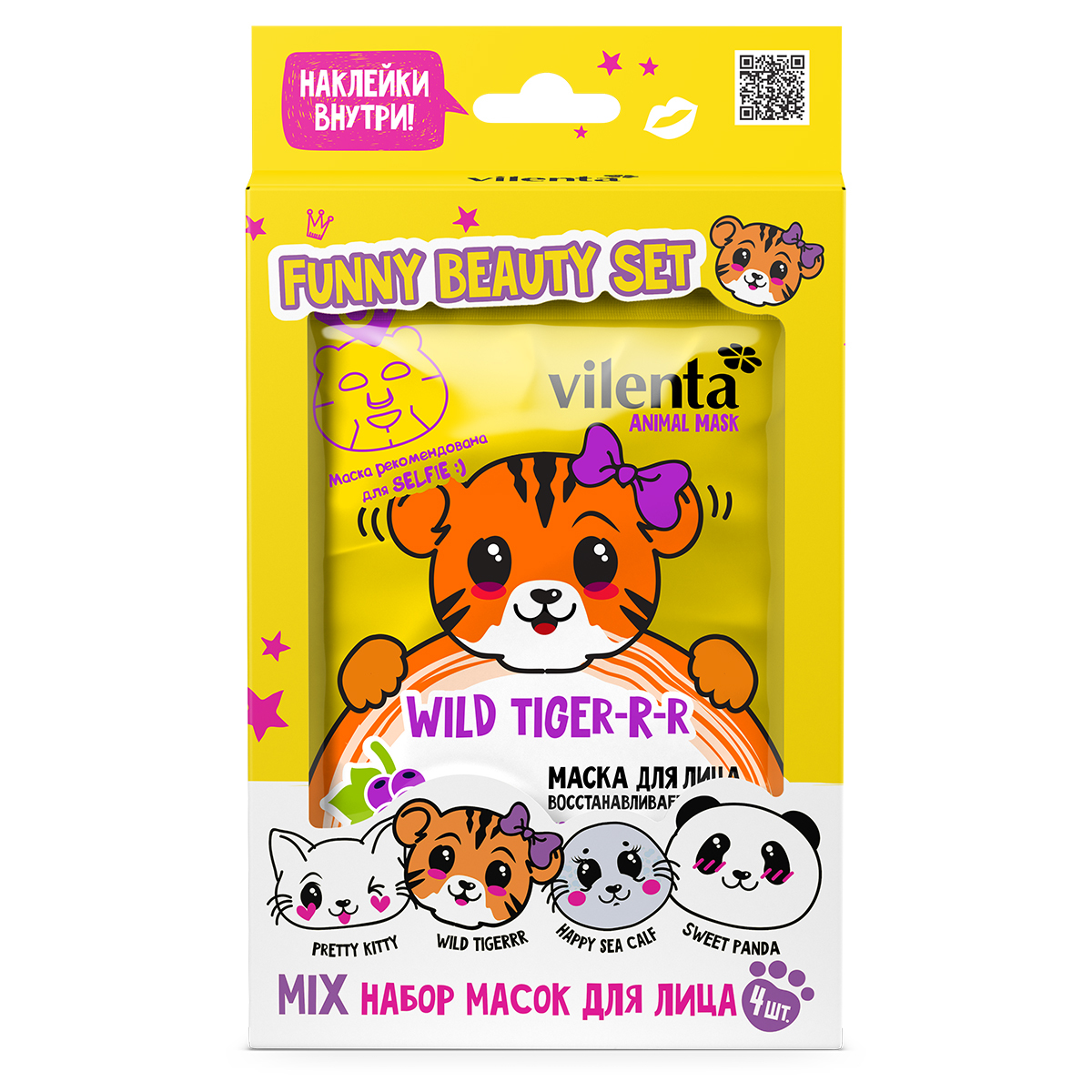 VILENTA Подарочный набор тканевых масок для лица ANIMAL MASKS FUNNY BEAUTY SET WILD TIGER (mix)