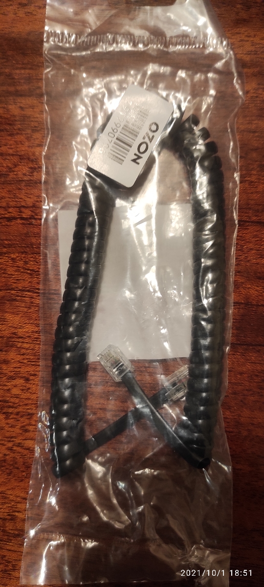 Телефонный витой трубочный шнур RJ-10(4P-4C) 2 м для подключения телефонных трубок, цвет: Черный