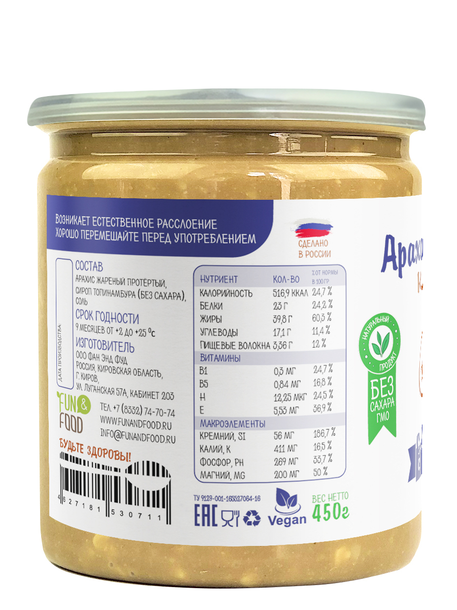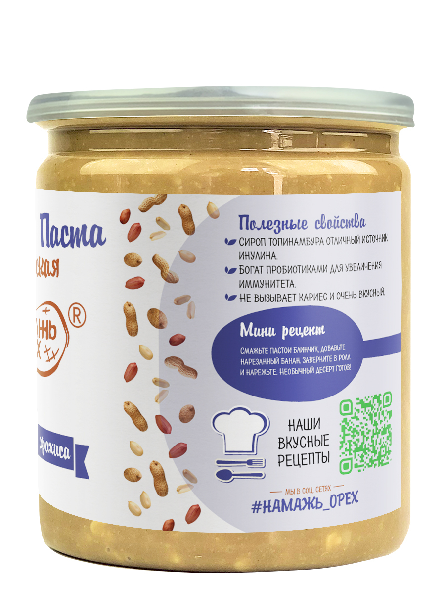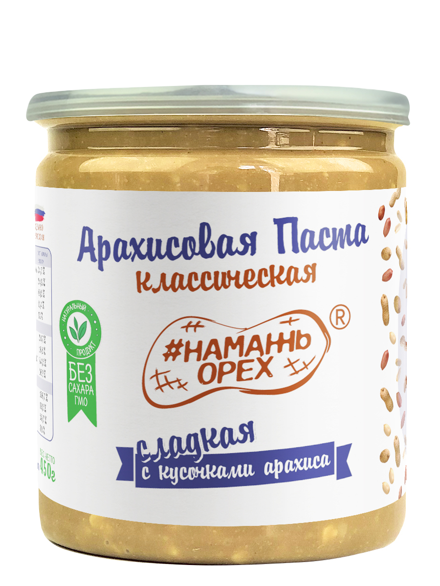 Арахисовая паста Кранч 450 гр. Намажь орех Ореховая паста без сахара С кусочками арахиса сладкая на сиропе топинамбура