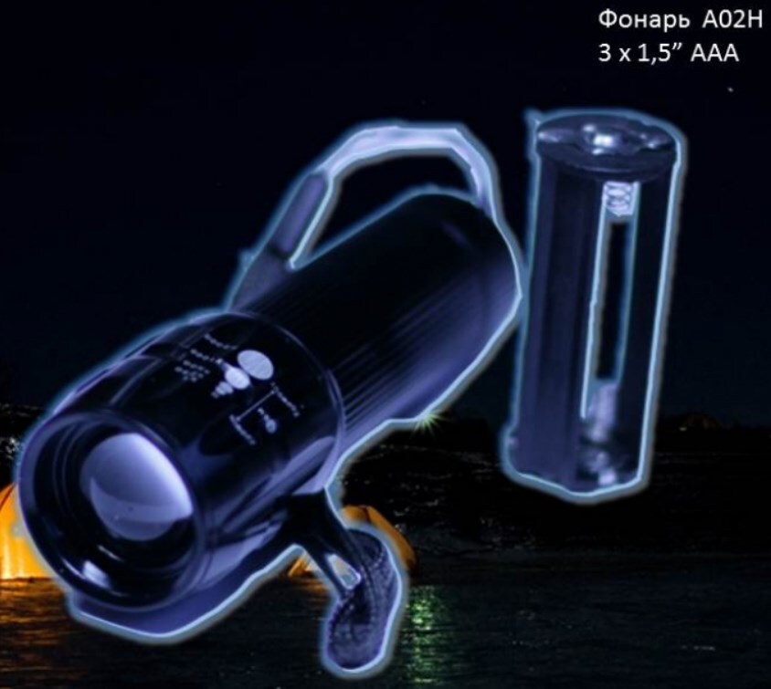 Фонарь светодиодный ручной металлический A02H zoom, 3 батарейки AAA