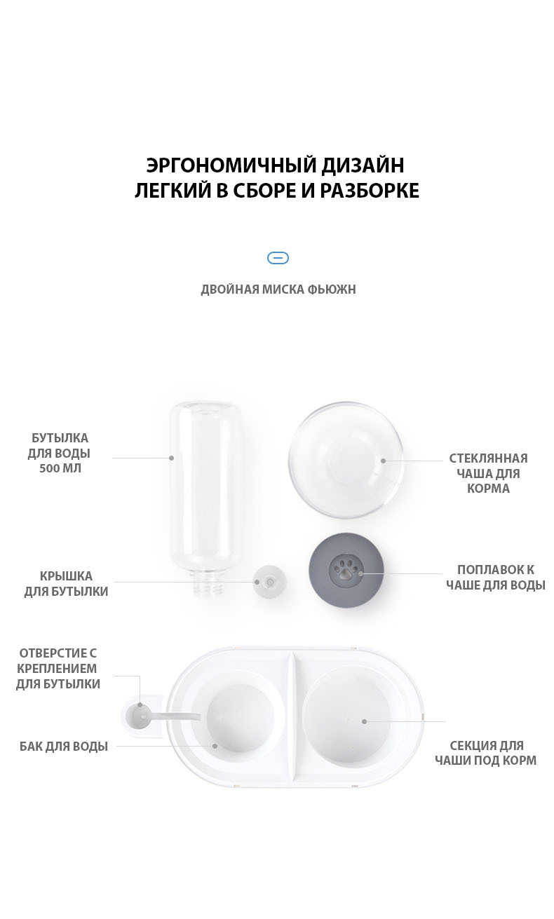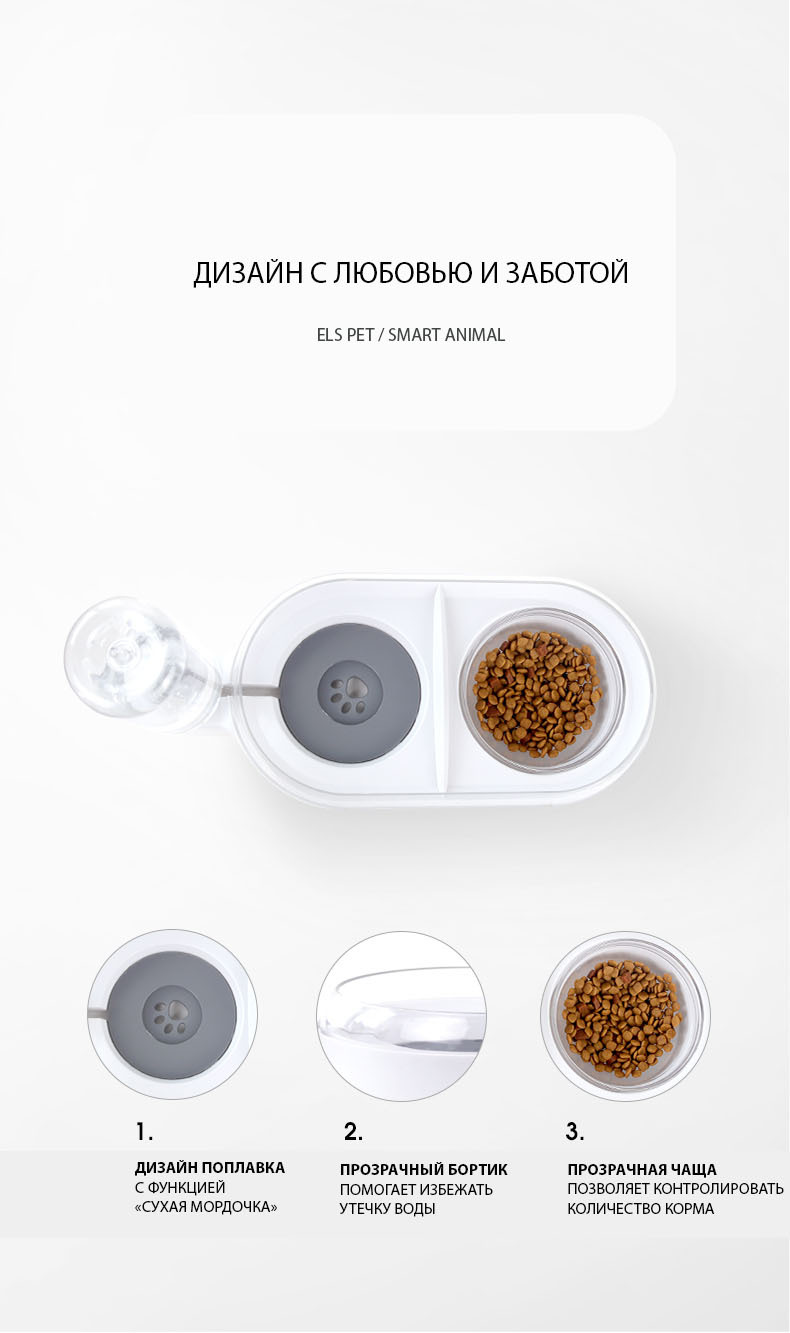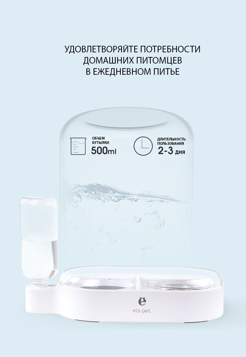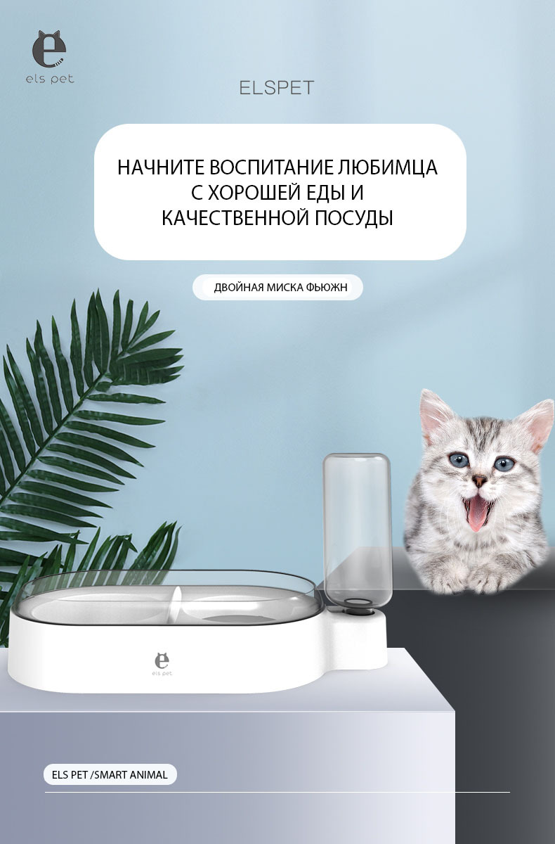 Двойная миска для собак, для кошек Фьюжн ELS PET (Белый, 500 мл)