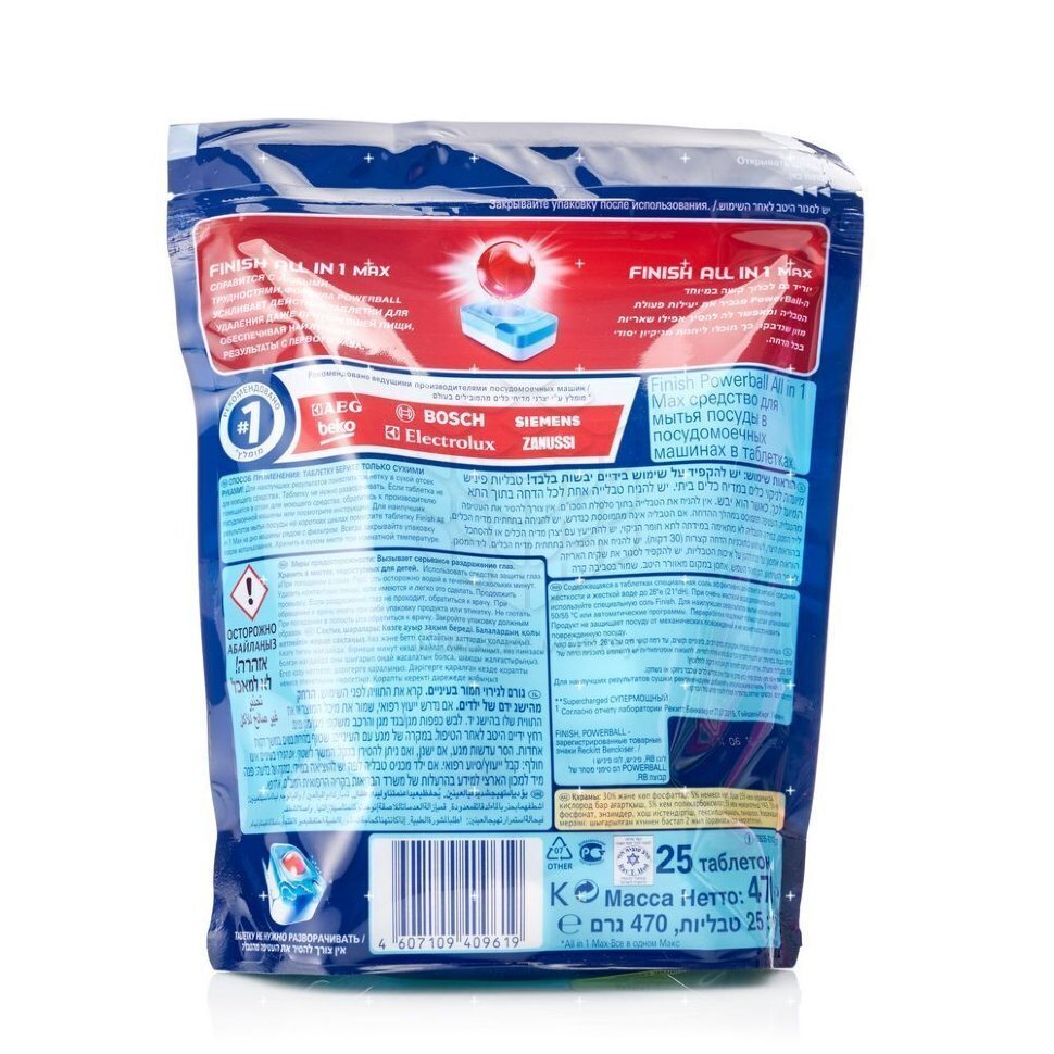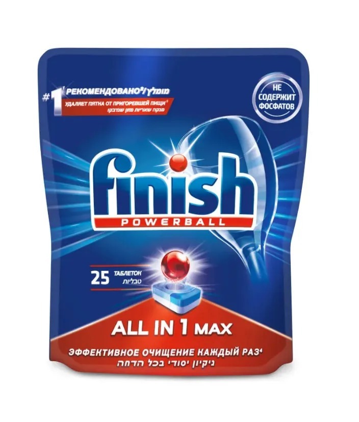 Таблетки для посудомоечных машин Finish All in 1 max, 25шт