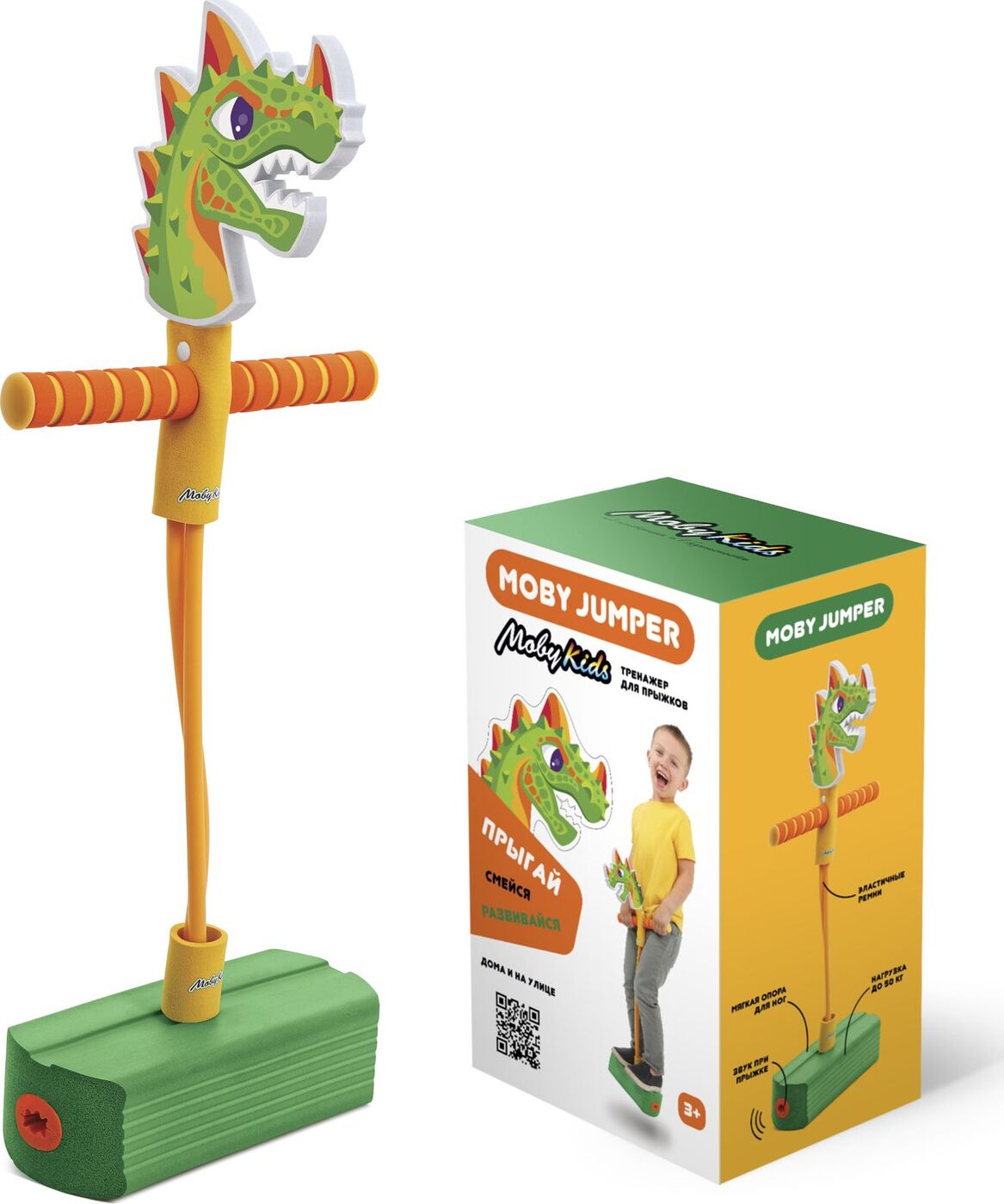 Тренажер Moby Kids Moby Jumper Дино, со звуком, зеленый, желтый