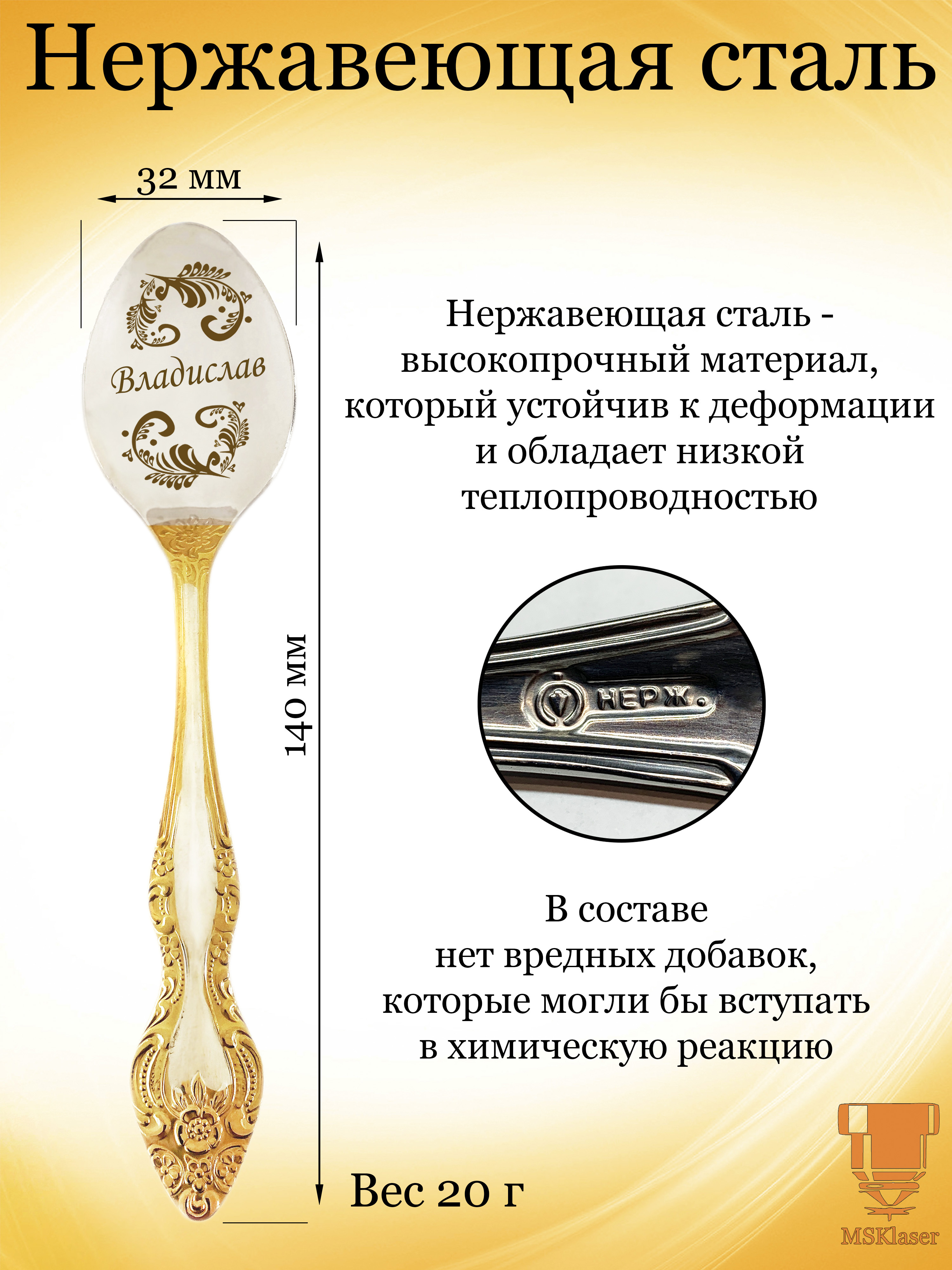 Ложка чайная Msklaser "Владислав", длина 14 см, 1 шт
