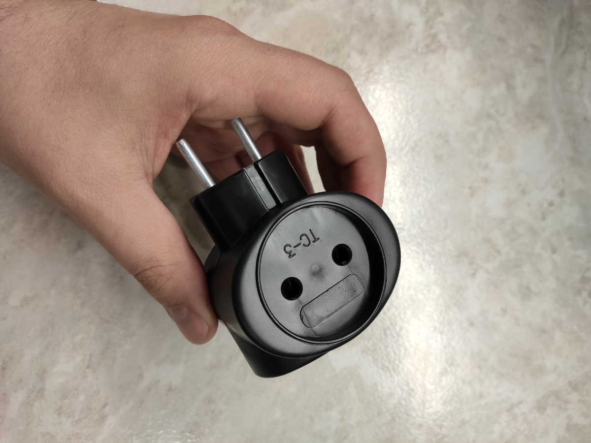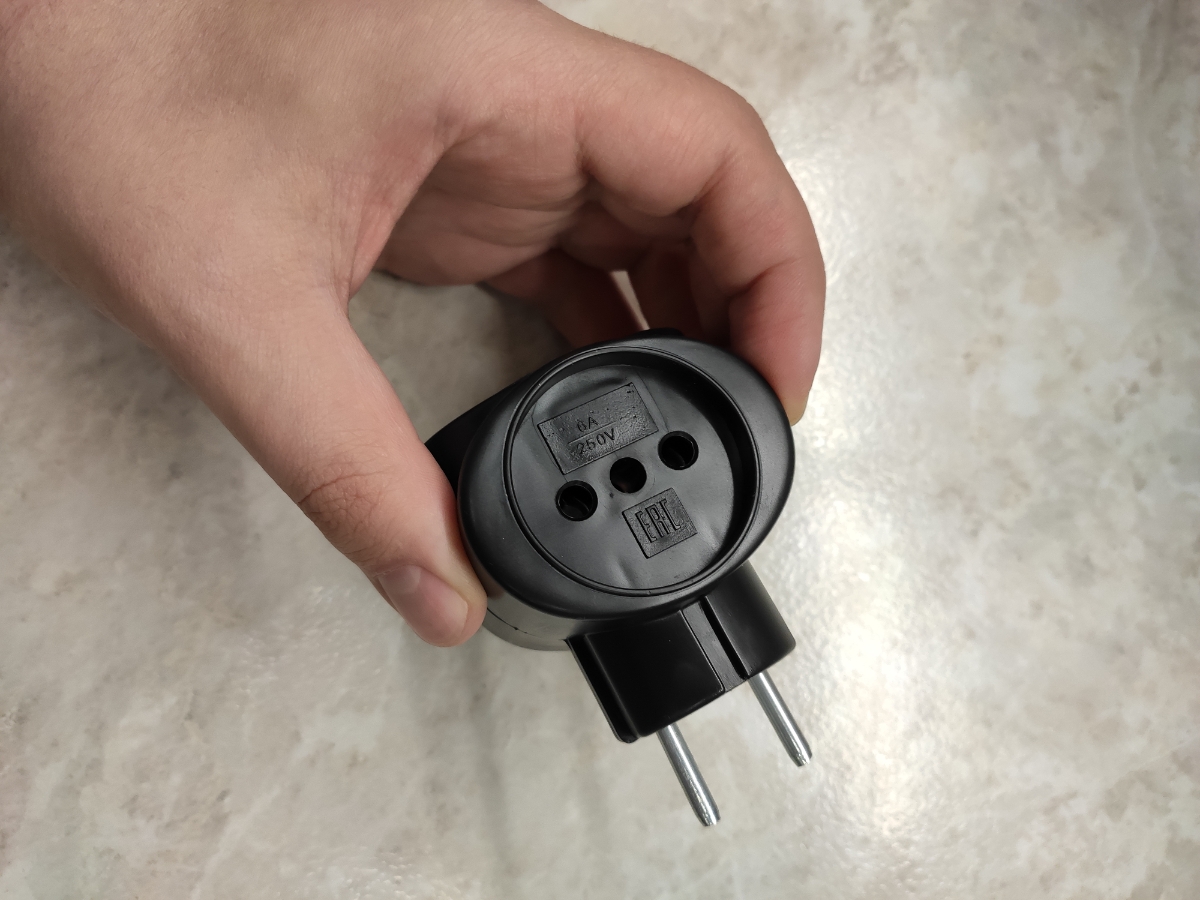 Сетевой электрический тройник с биметаллом (6 А) без заземления