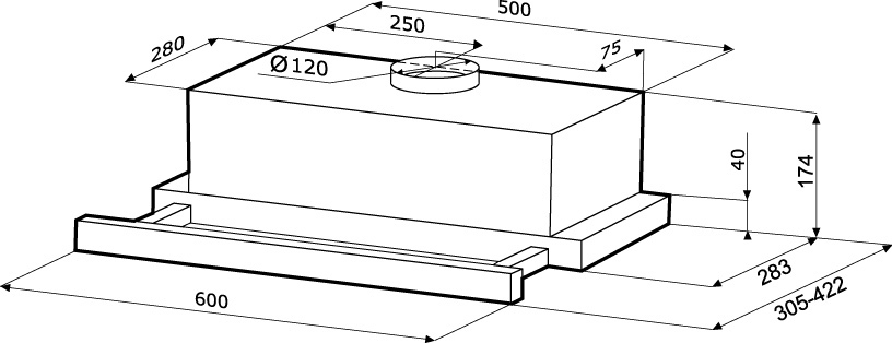 Вытяжка Krona Kamilla slim 600, серебристый, 2 мотора