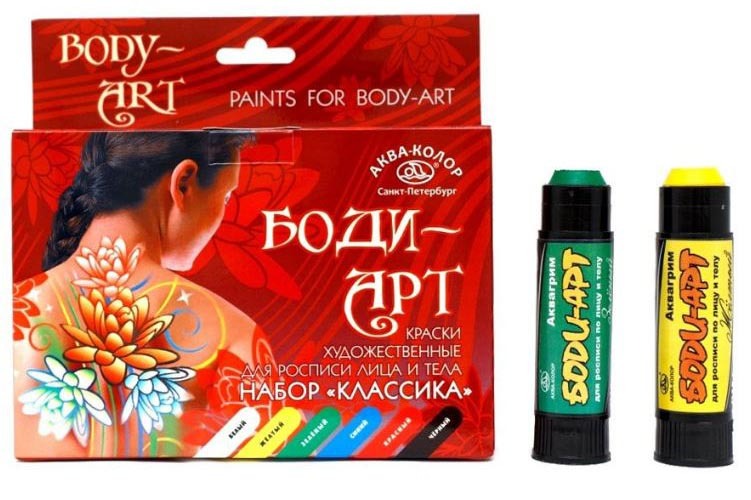 Грим Краски "Боди-арт", Классика, для росписи лица и тела, набор 6 цветов