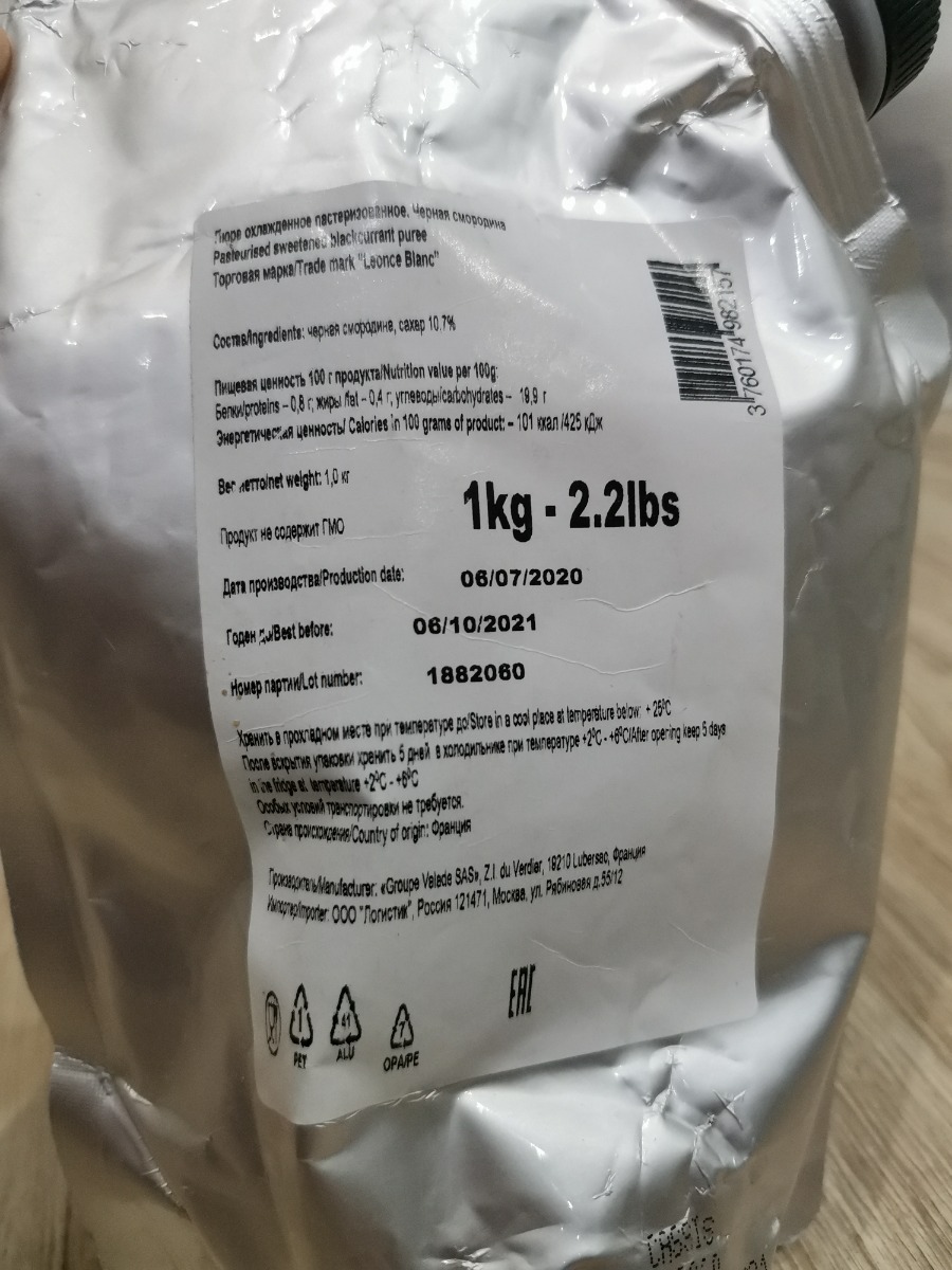 Пюре Чёрная смородина охлажденное "Leonce Blanc" 1 кг