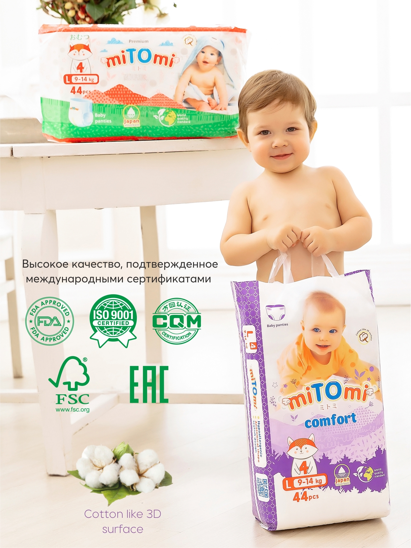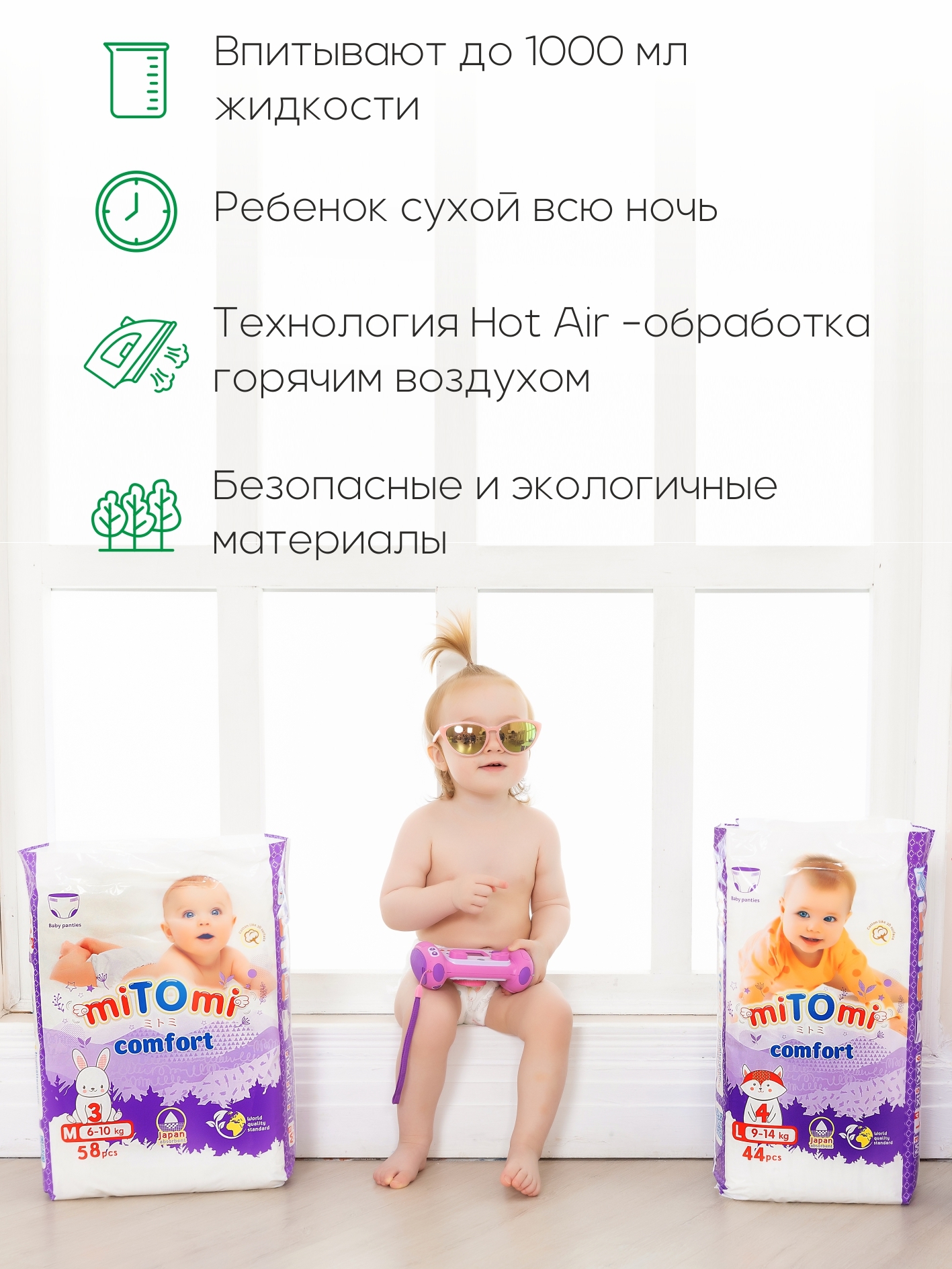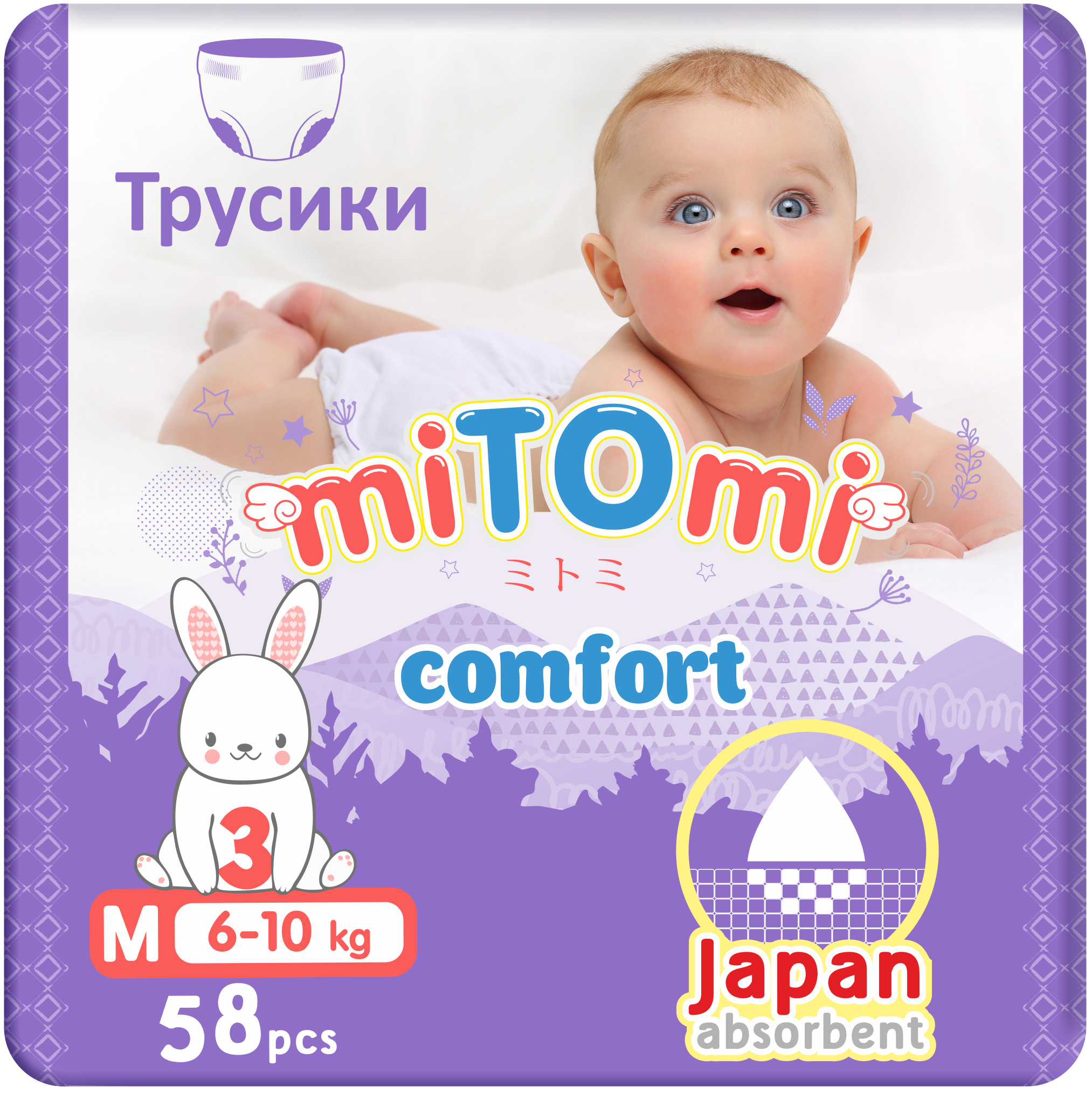 Подгузники-трусики miTOmi Comfort, размер M (6-10 кг), 58 шт.