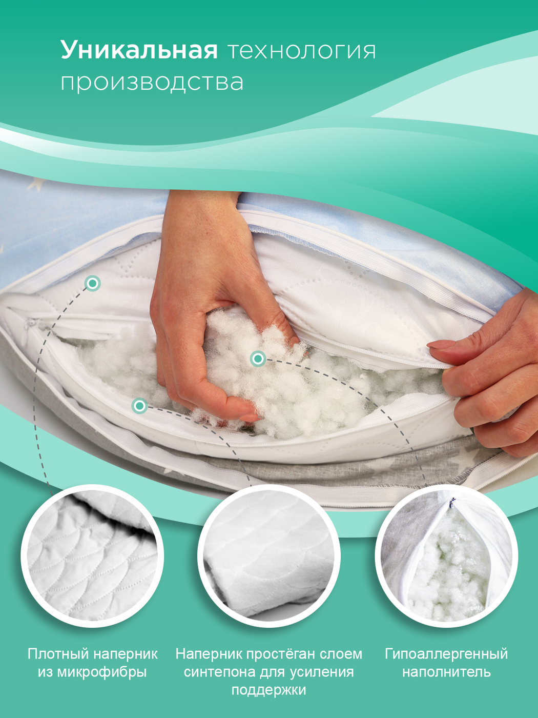 Подушка для кормящих и беременных Body Pillow с двухсторонней наволочкой , 140x90