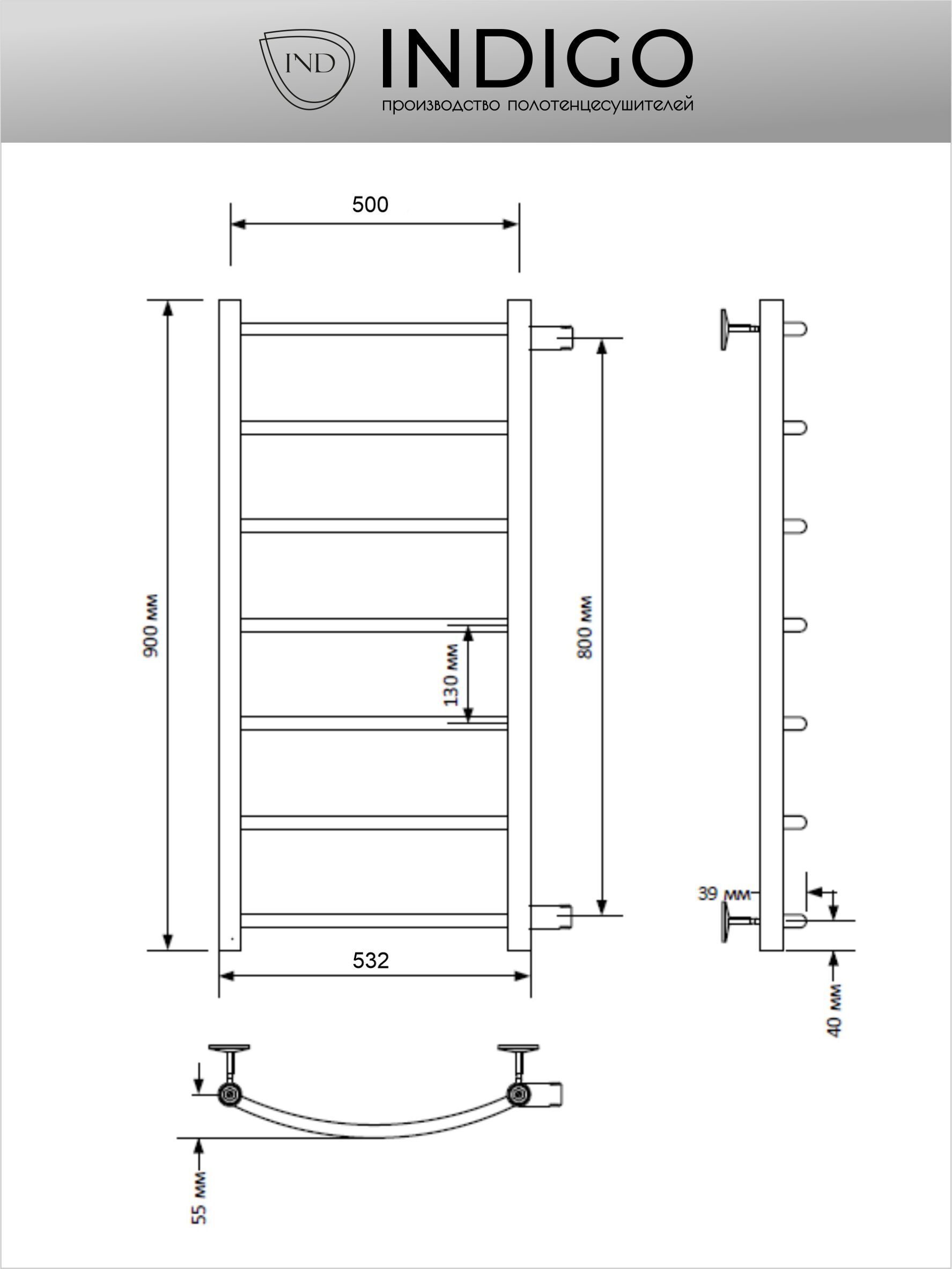 Полотенцесушитель Водяной Indigo 500мм 800мм форма Лесенка