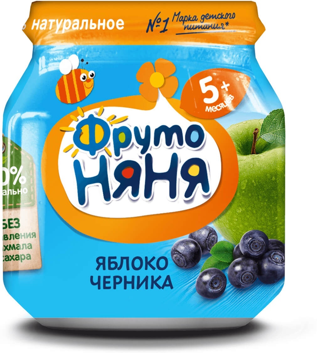 Пюре фрутовое ФрутоНяня с 5 месяцев, яблоко и черника, 100 г