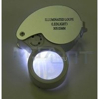 Ручная лупа 50мм с 10 кратным увеличением и с 2 Led подсветкой 77350B