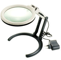 Лупа настольная 3х/8х с подсветкой (6LED) на аккумуляторе подставка/прищепка MG9006