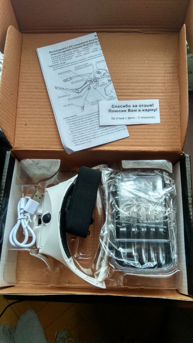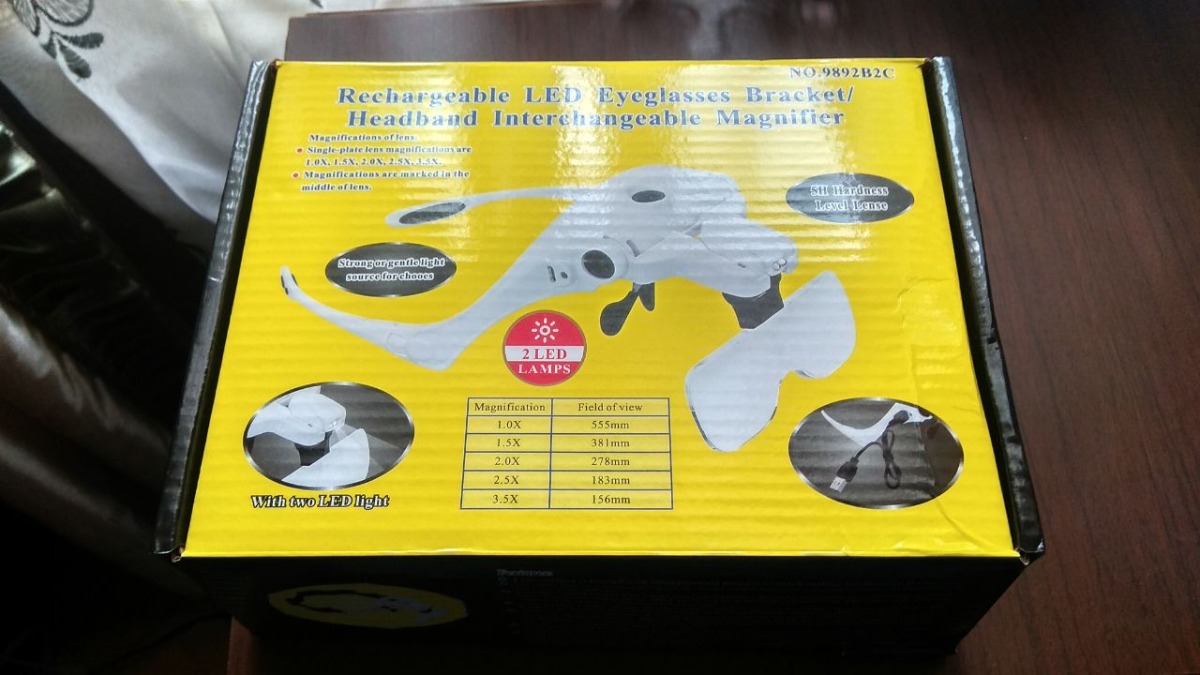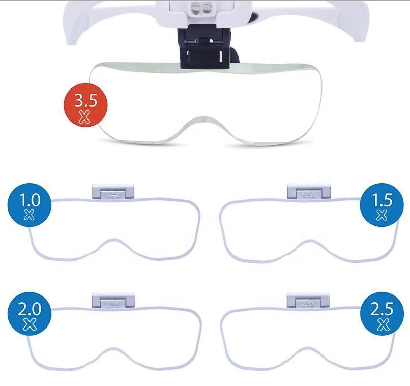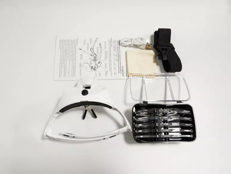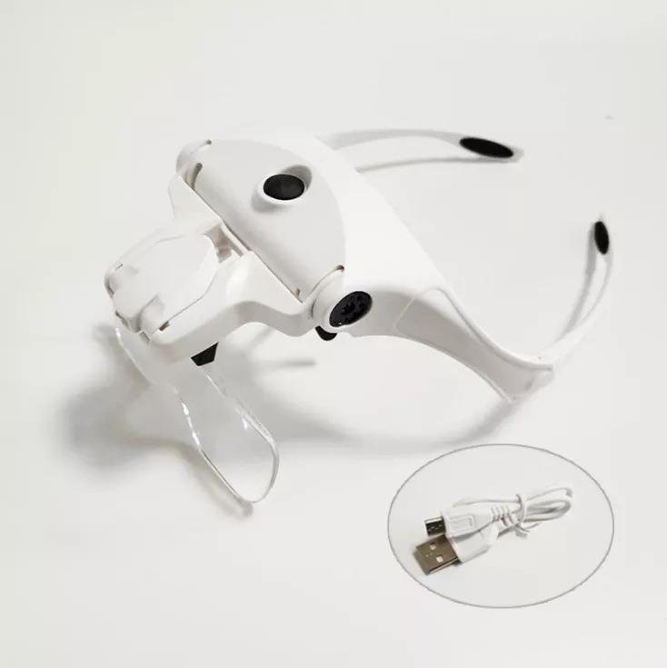 Лупа (очки) налобная бинокулярная с LED подсветкой и встроенным аккумулятором с зарядкой от USB