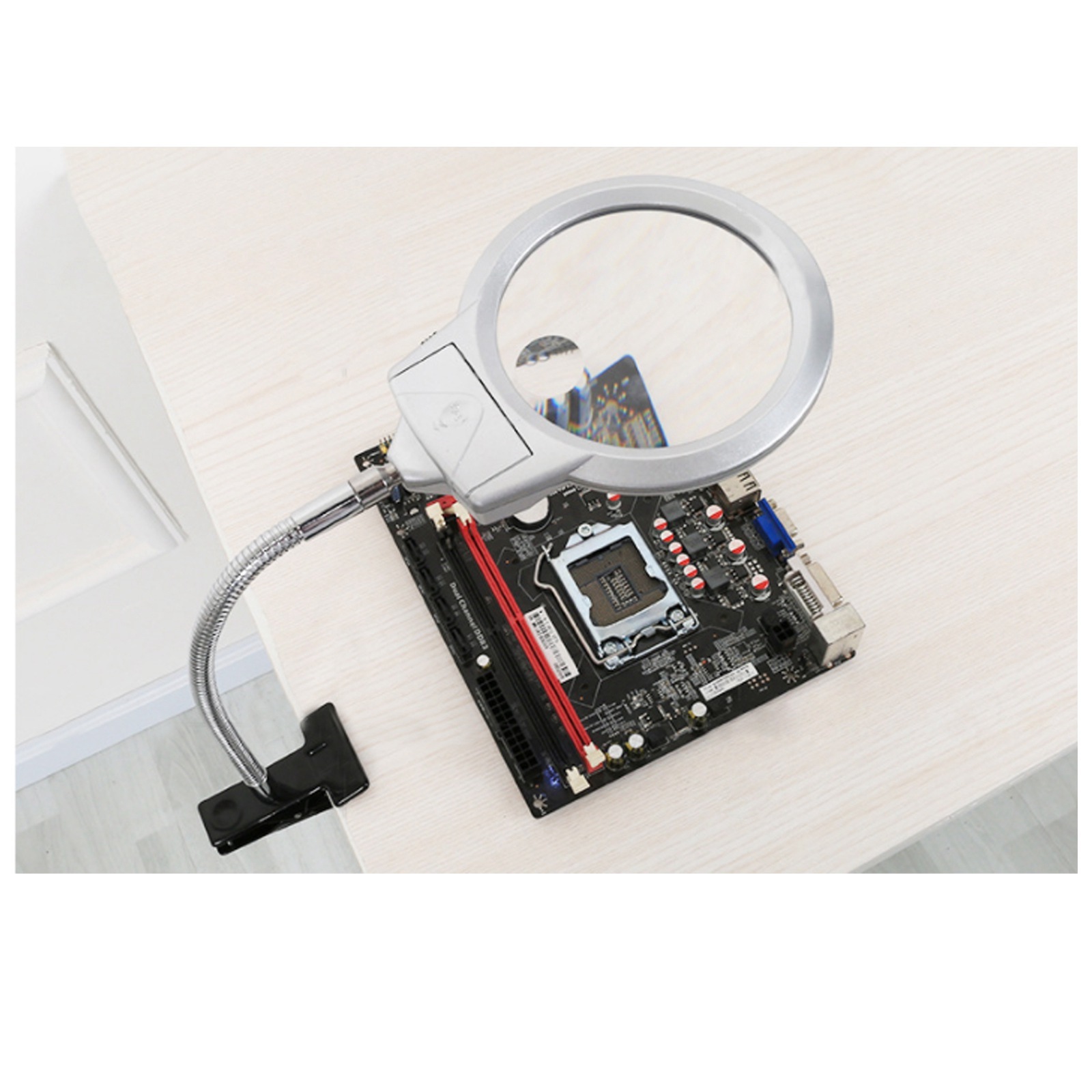 Увеличительное стекло 5X Гибкая подставка с регулируемой яркостью Лупа со светом