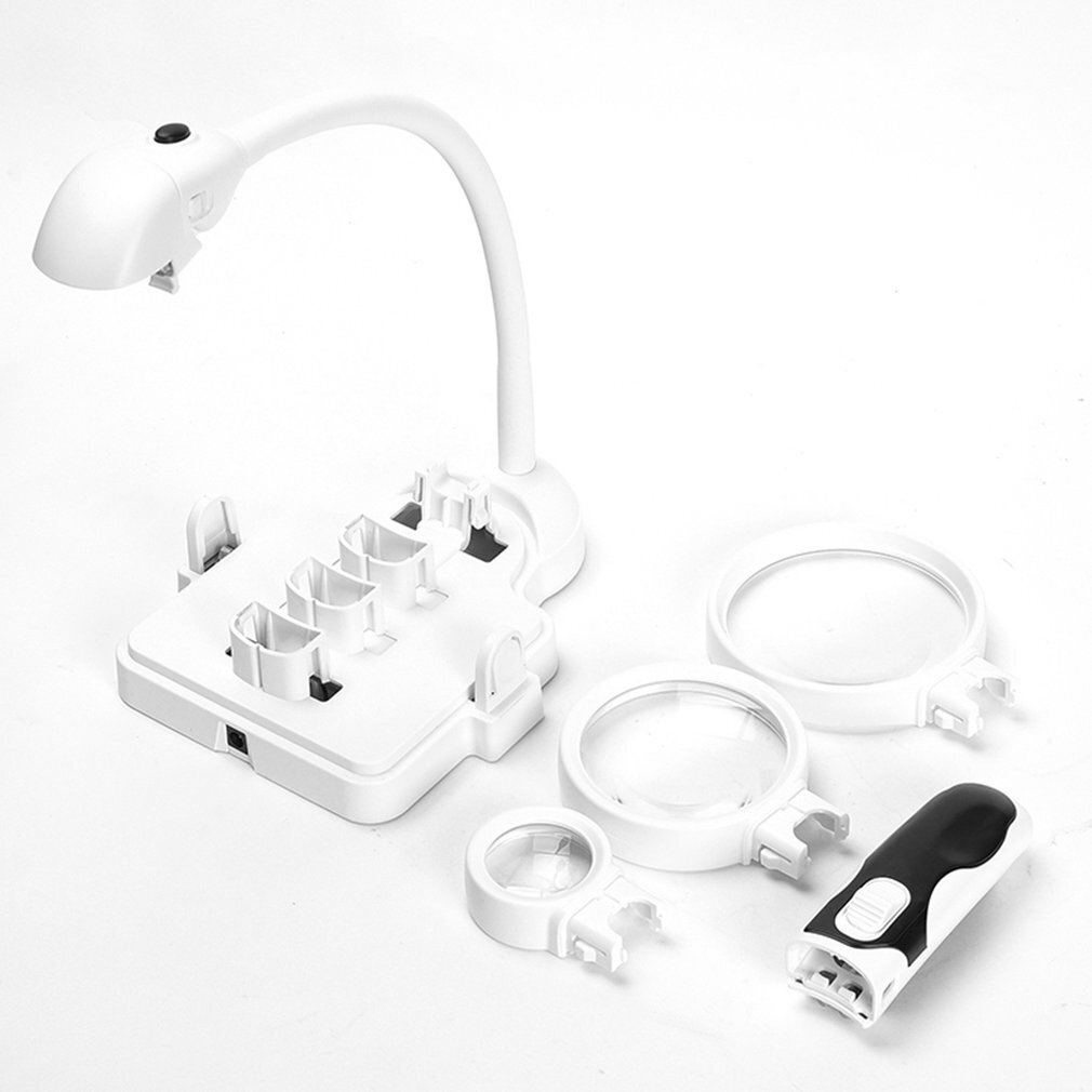 Лупа настольная с насадками 2X 5X 16X, 6LED, MG7760