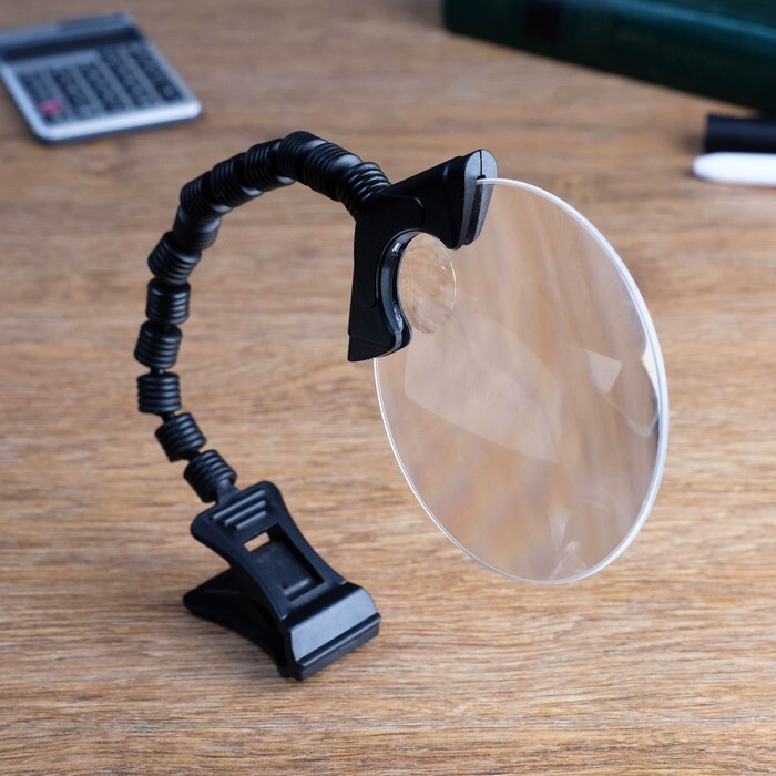 Лупа настольная 2,5*, 5*, на гибкой ножке, с прищепкой,