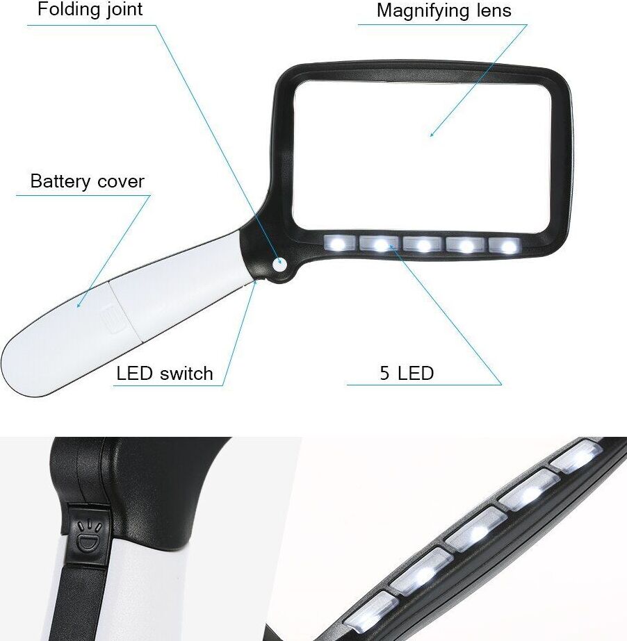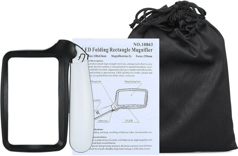 Светодиодная прямоугольная складная лупа 2X с подсветкой 5LED