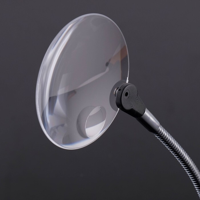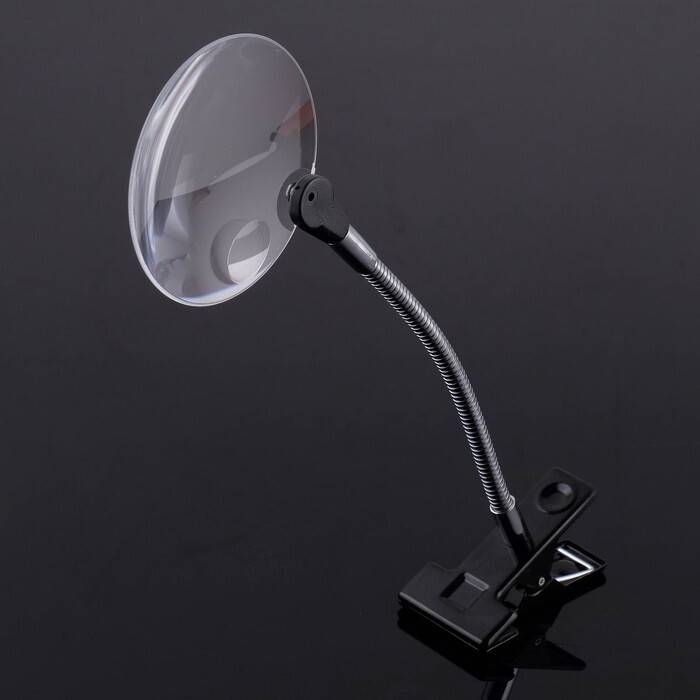 Лупа настольная 3х, 8х, диаметр 9см, на гибкой ножке, с прищепкой