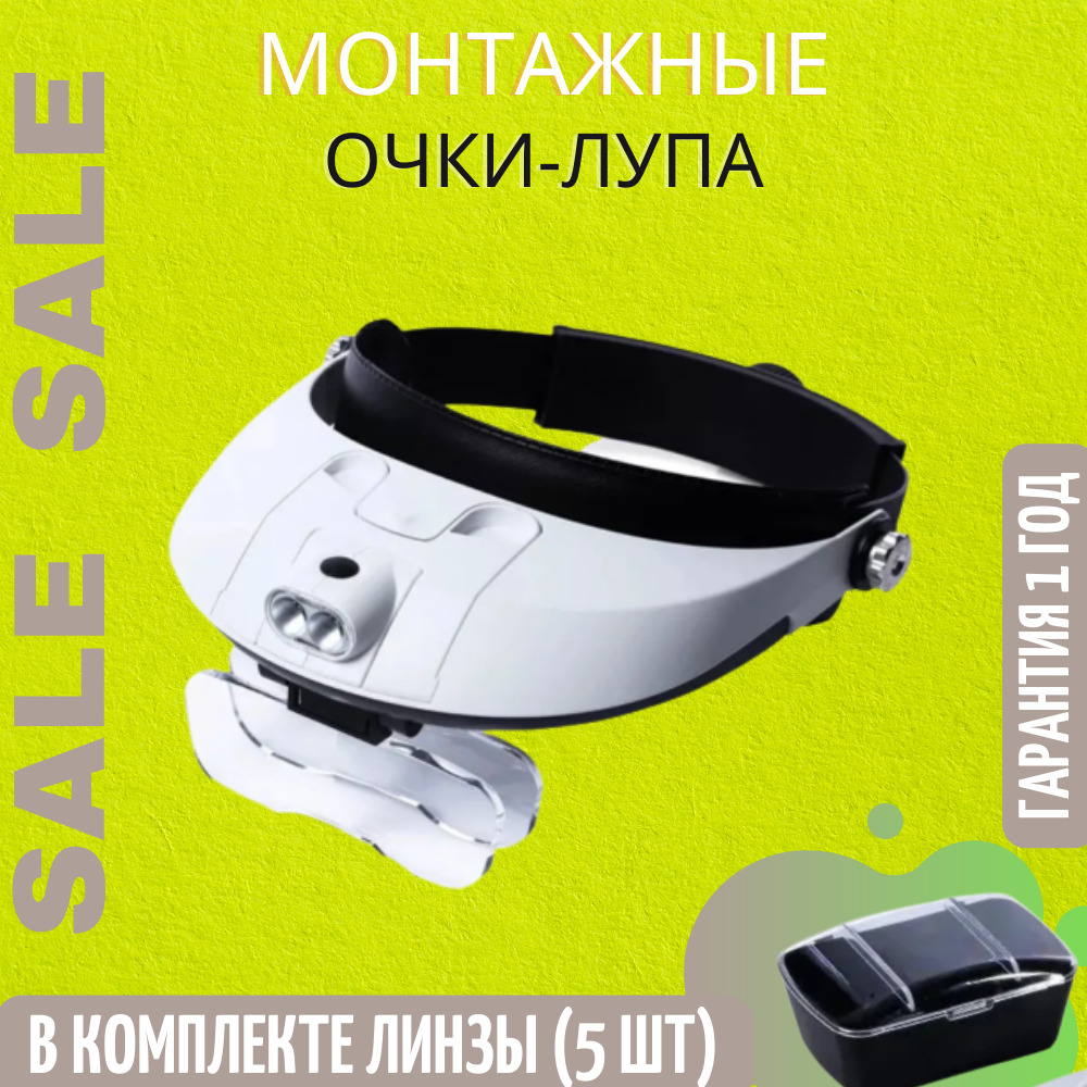 Бинокулярные монтажные очки лупа MG81001-G с подсветкой (2 LED), 5 линз / Защитные очки