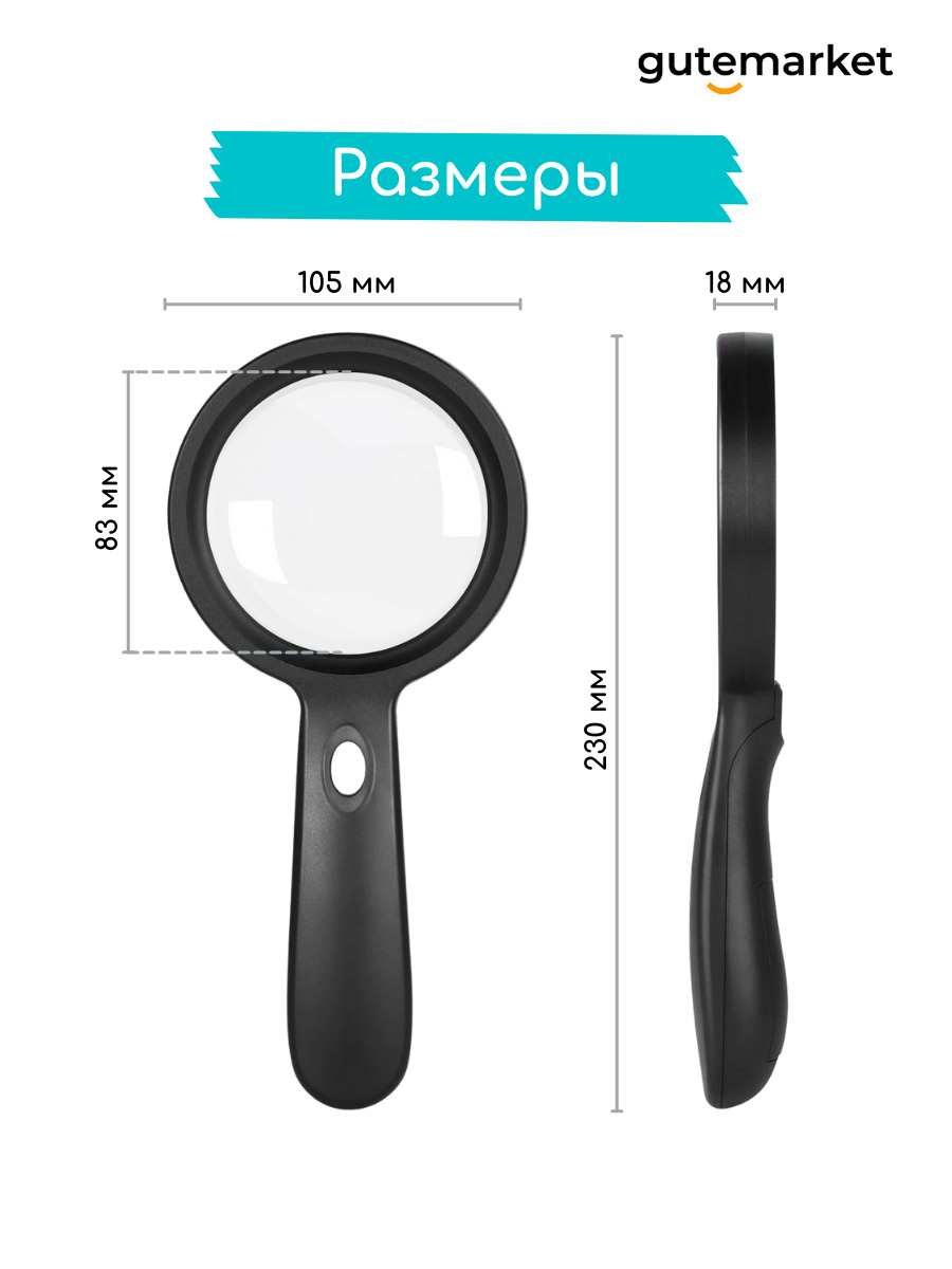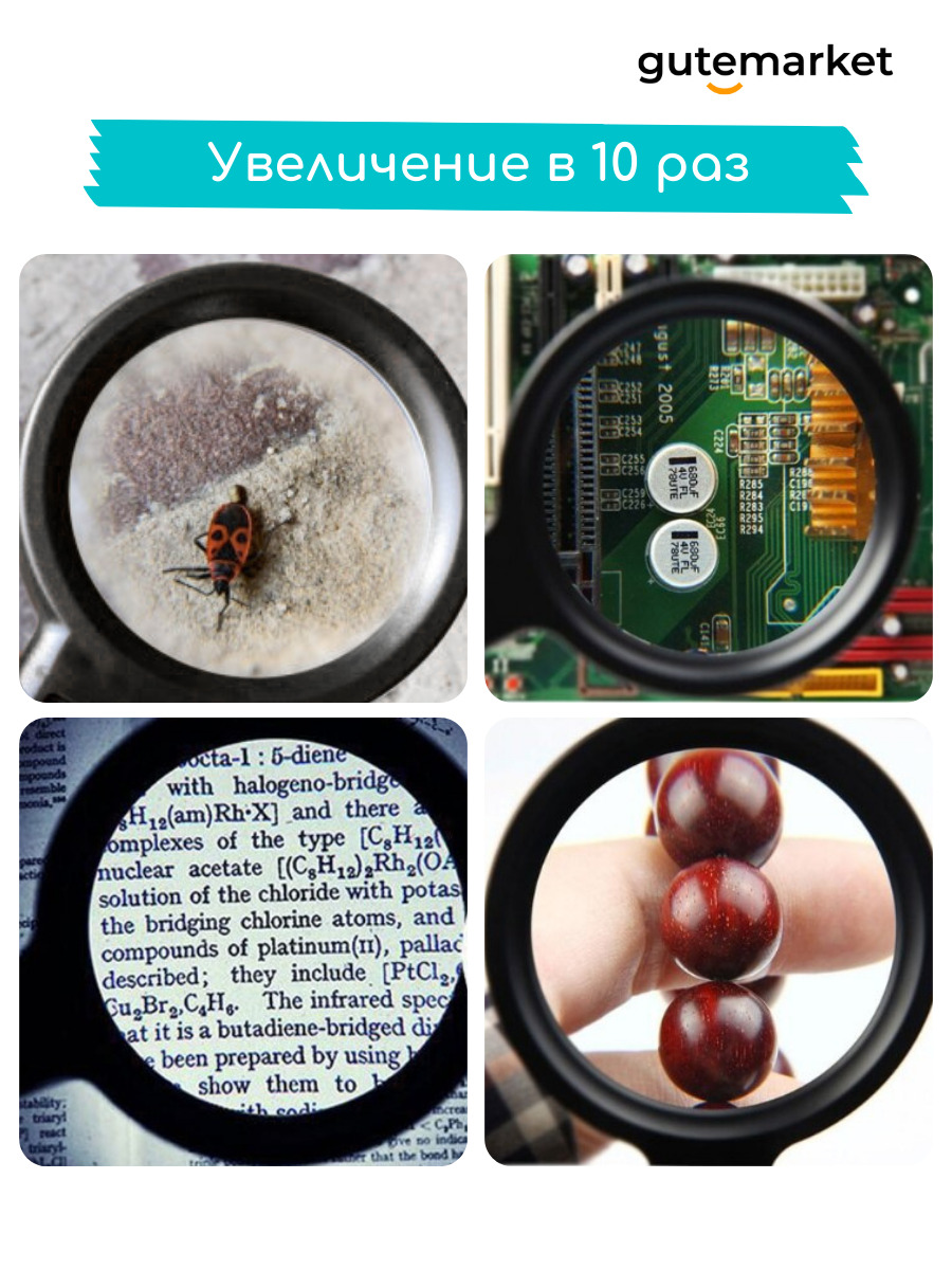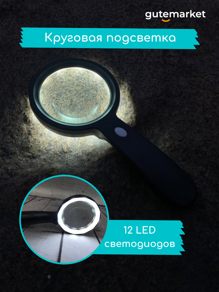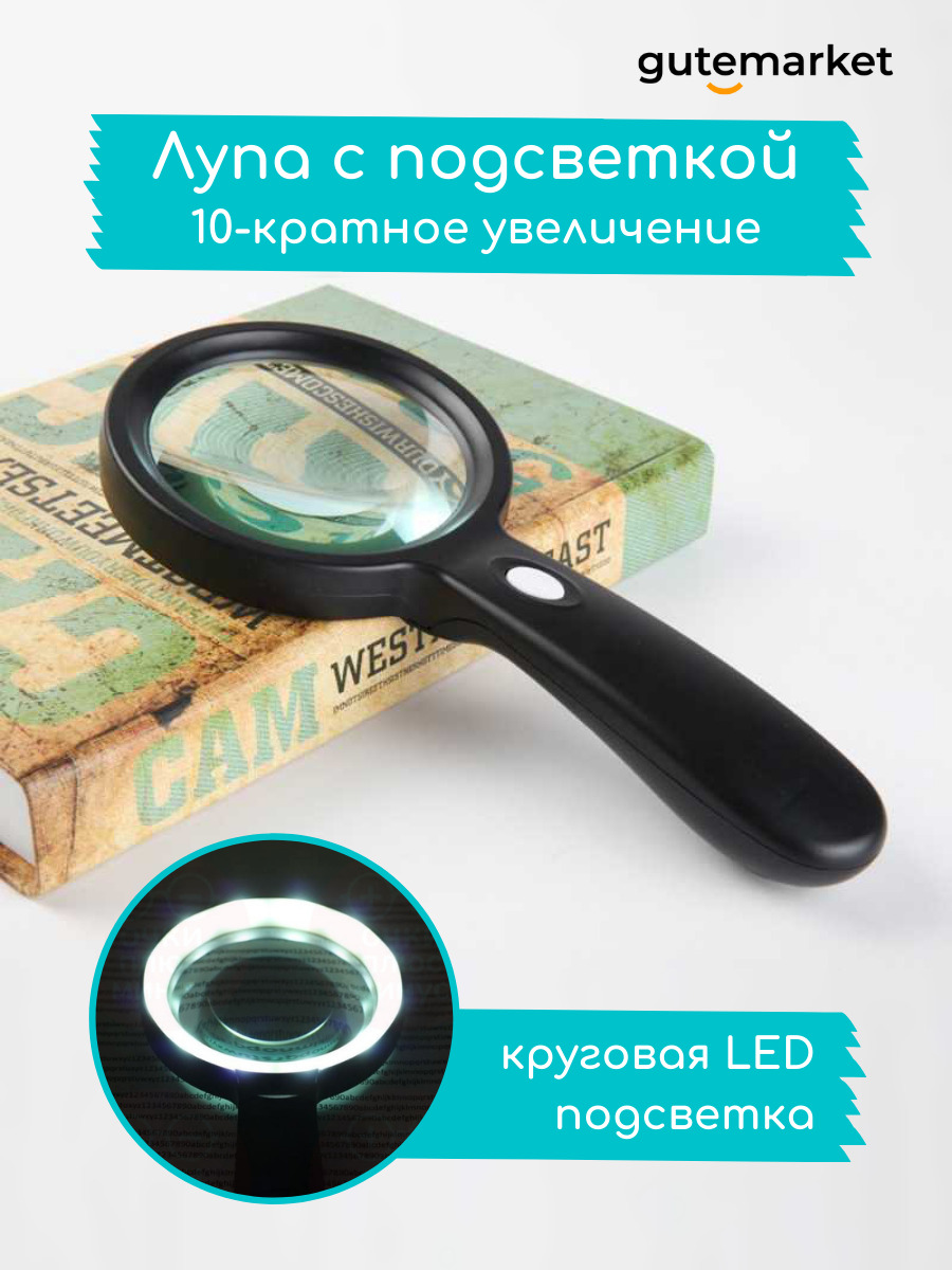 Лупа ручная с подсветкой 10x / увеличительное стекло для чтения