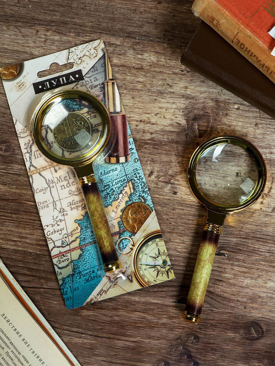 Лупа пластик с наклейкой "Карта", диаметр 6 см, увеличение 3х