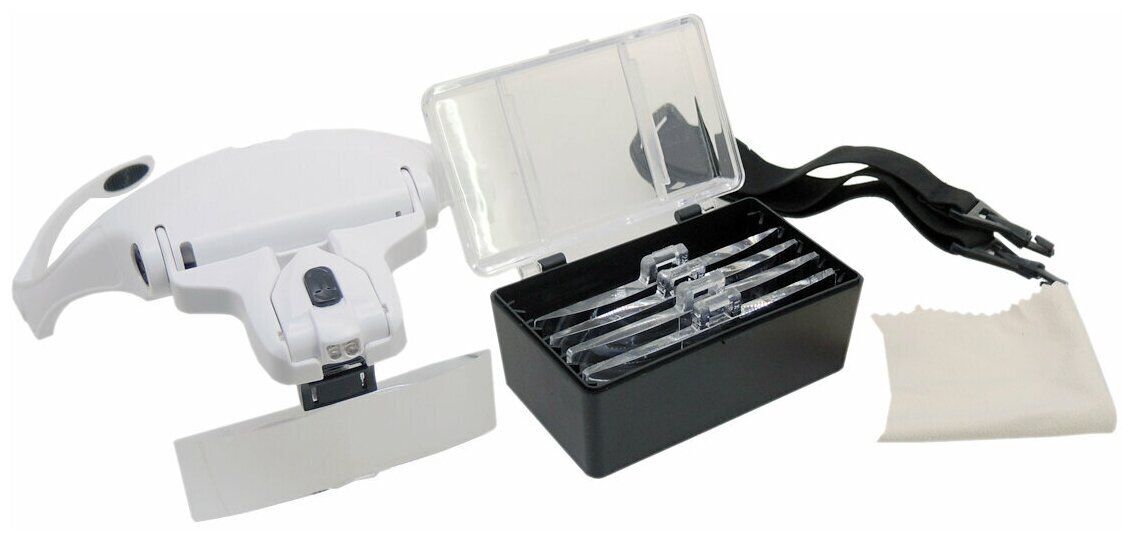 Лупа налобная с LED подсветкой, 5 увеличительных линз в комплекте, очки - лупа