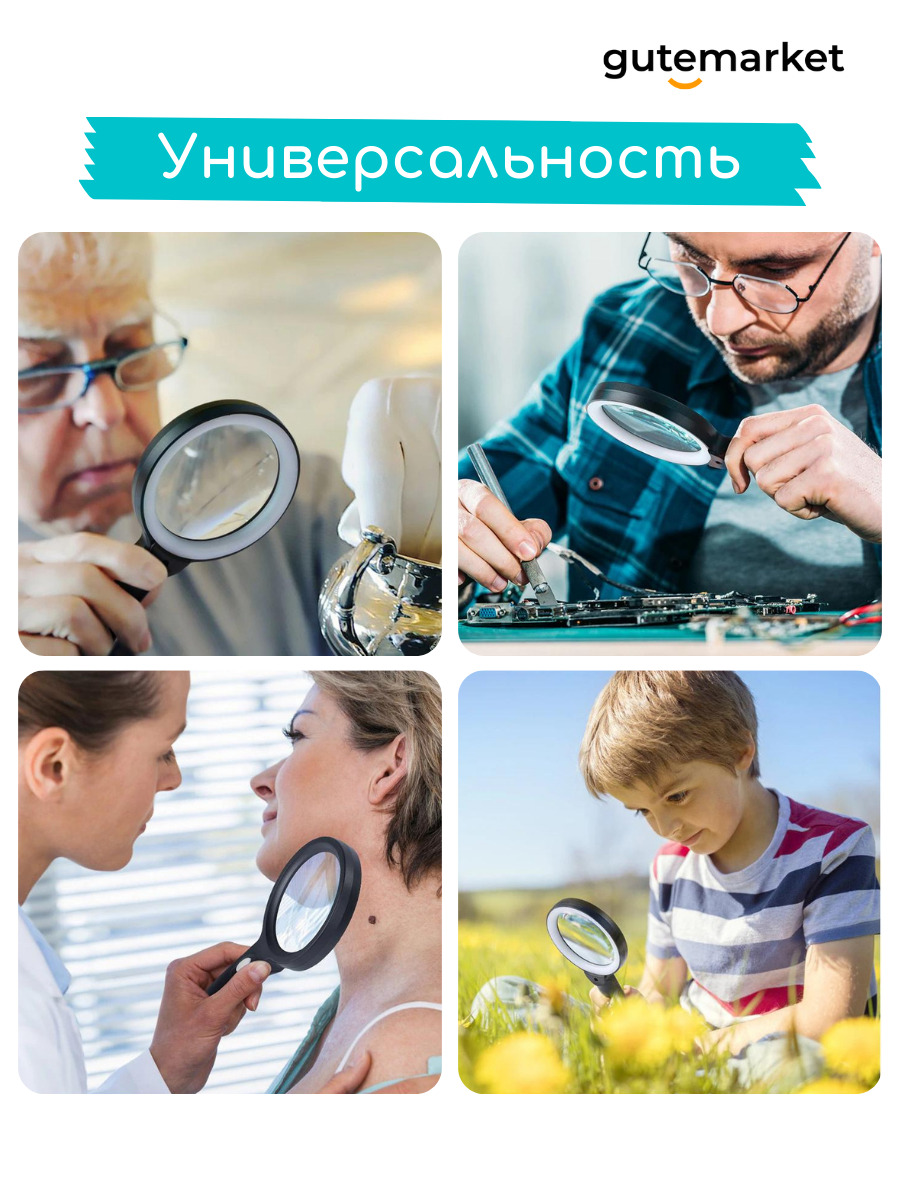 Лупасмотровая (увеличительное стекло) для чтения, рукоделия и ремонта