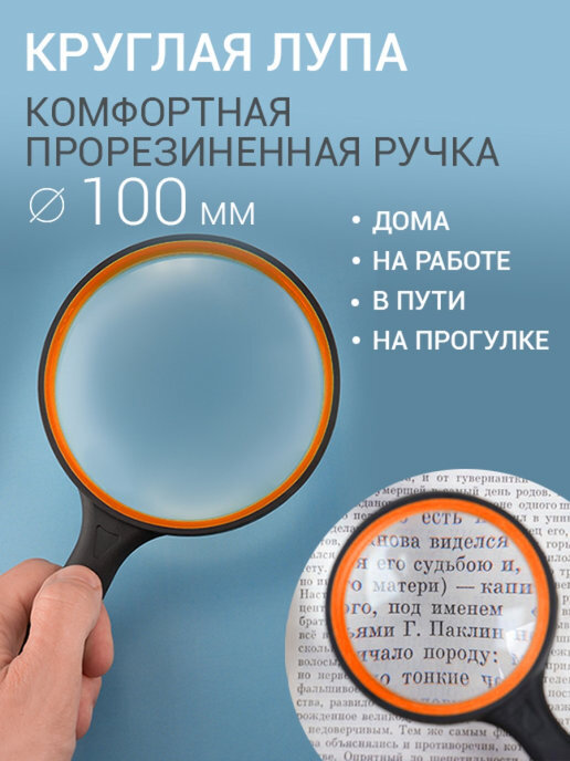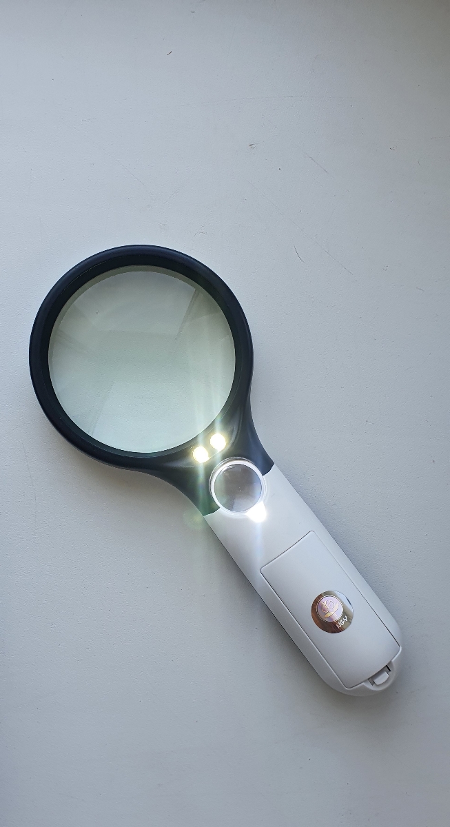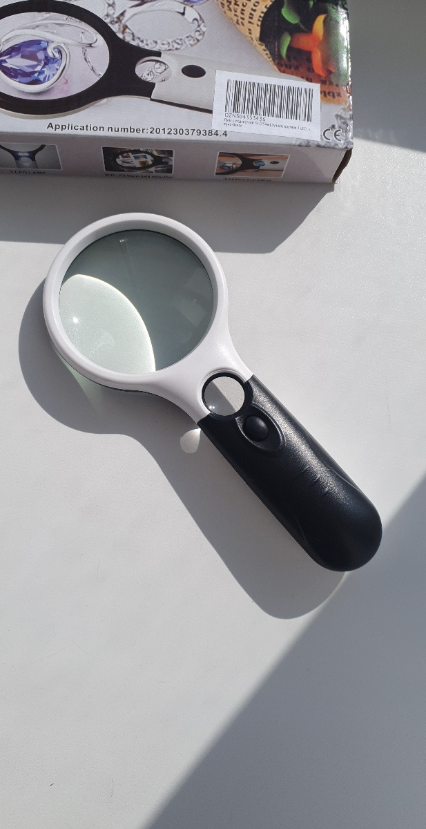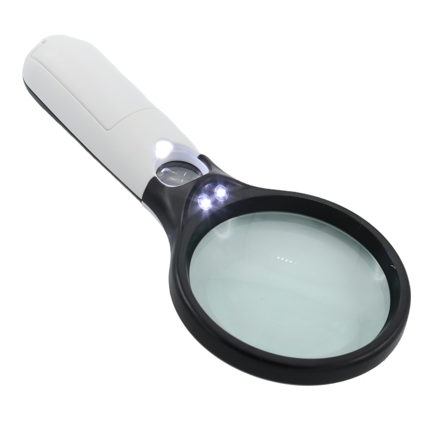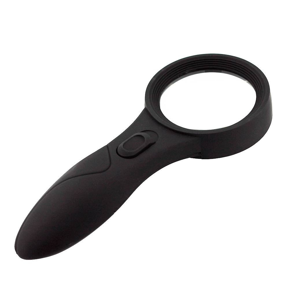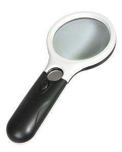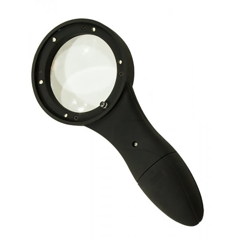 Лупа с подсветкой 3х (75мм) ручная, круглая 3 LED, черно-белая