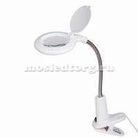 Лупа на струбцине круглая настольная 5Х с подсветкой с крышкой, белая REXANT_31-0222