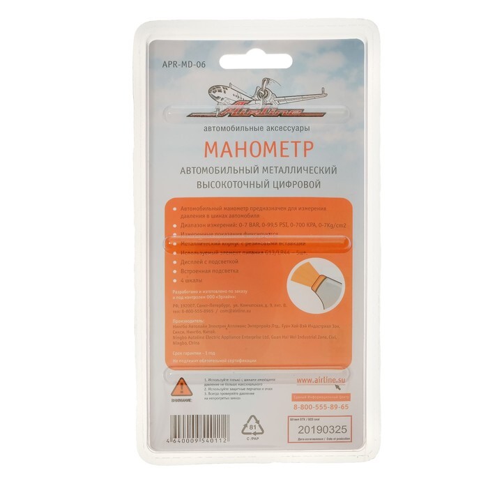 Манометр цифровой, с подсветкой, металлический, до 7 атм