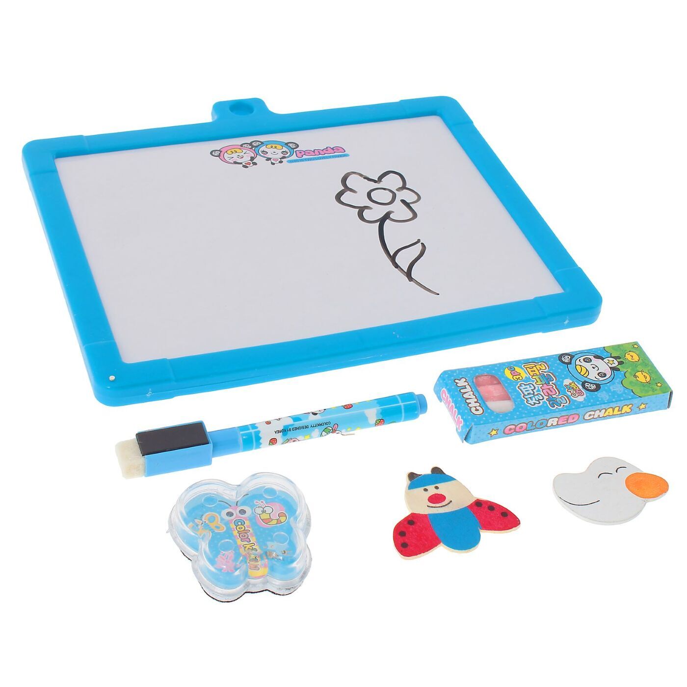 Доска для рисования магнитная, с ручкой, 4 печати в комплекте, цвет голубой, 17x17см