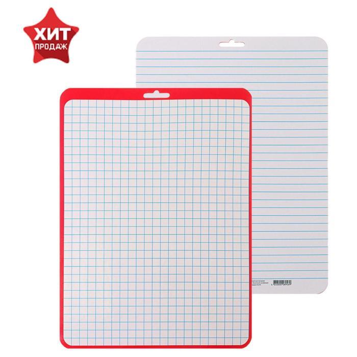 Доска маркерная A4, двусторонняя клетка/линейка, красная