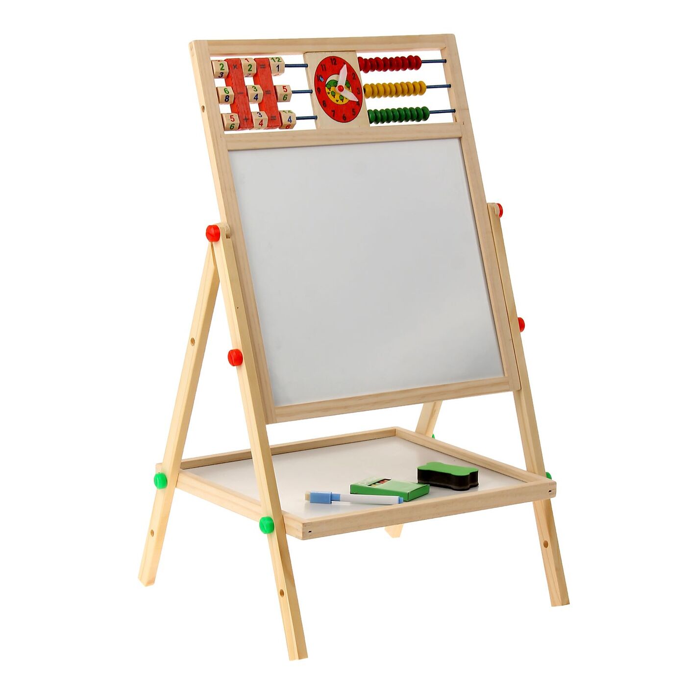 Доска магнитная на ножках: маркер, губка и 5 цветных мелков в комплекте, рабочее поле - 29 * 32 см