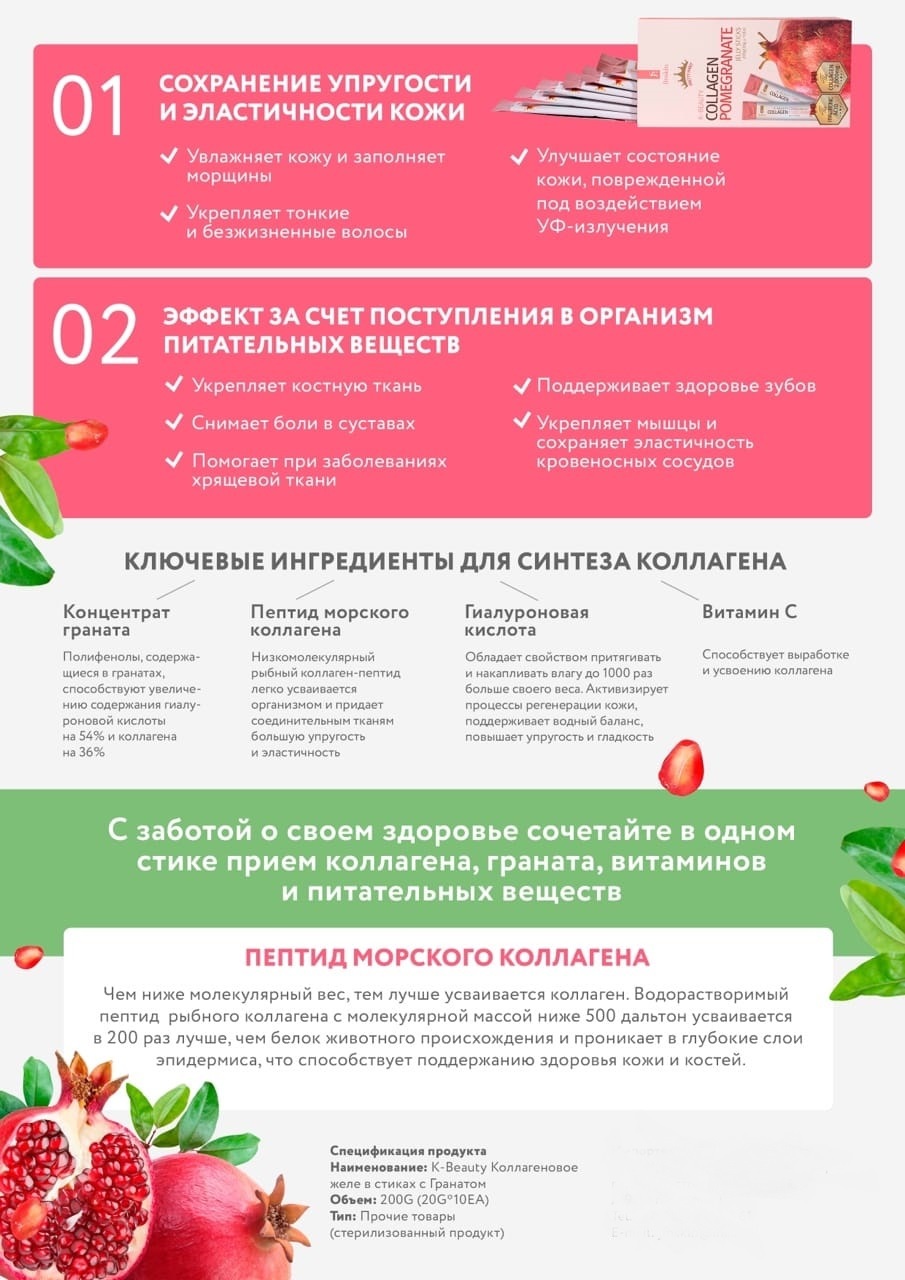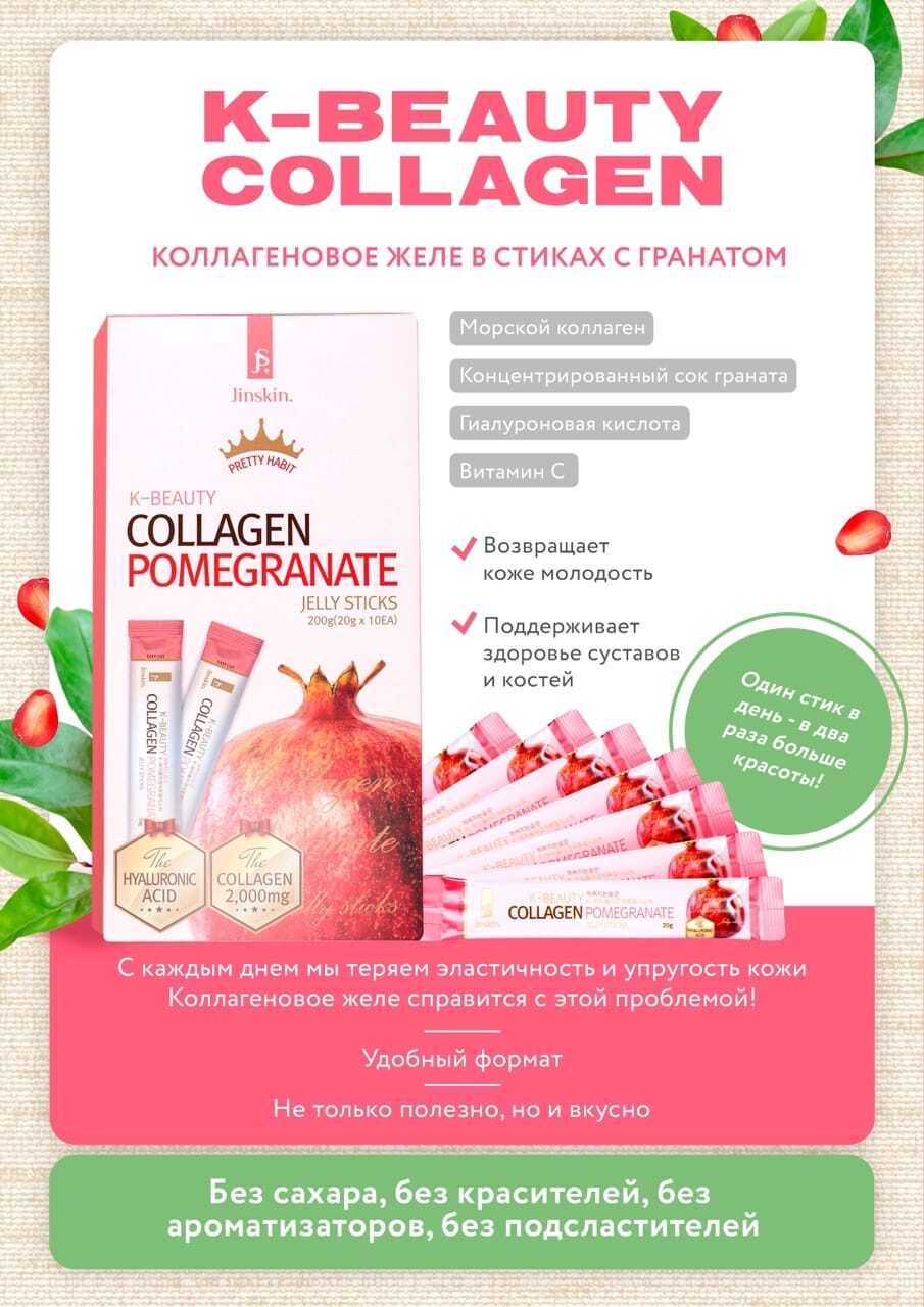 Гранатовый коллаген/Коллагеновое желе K-Beauty в стиках с Гранатом/ 10 шт