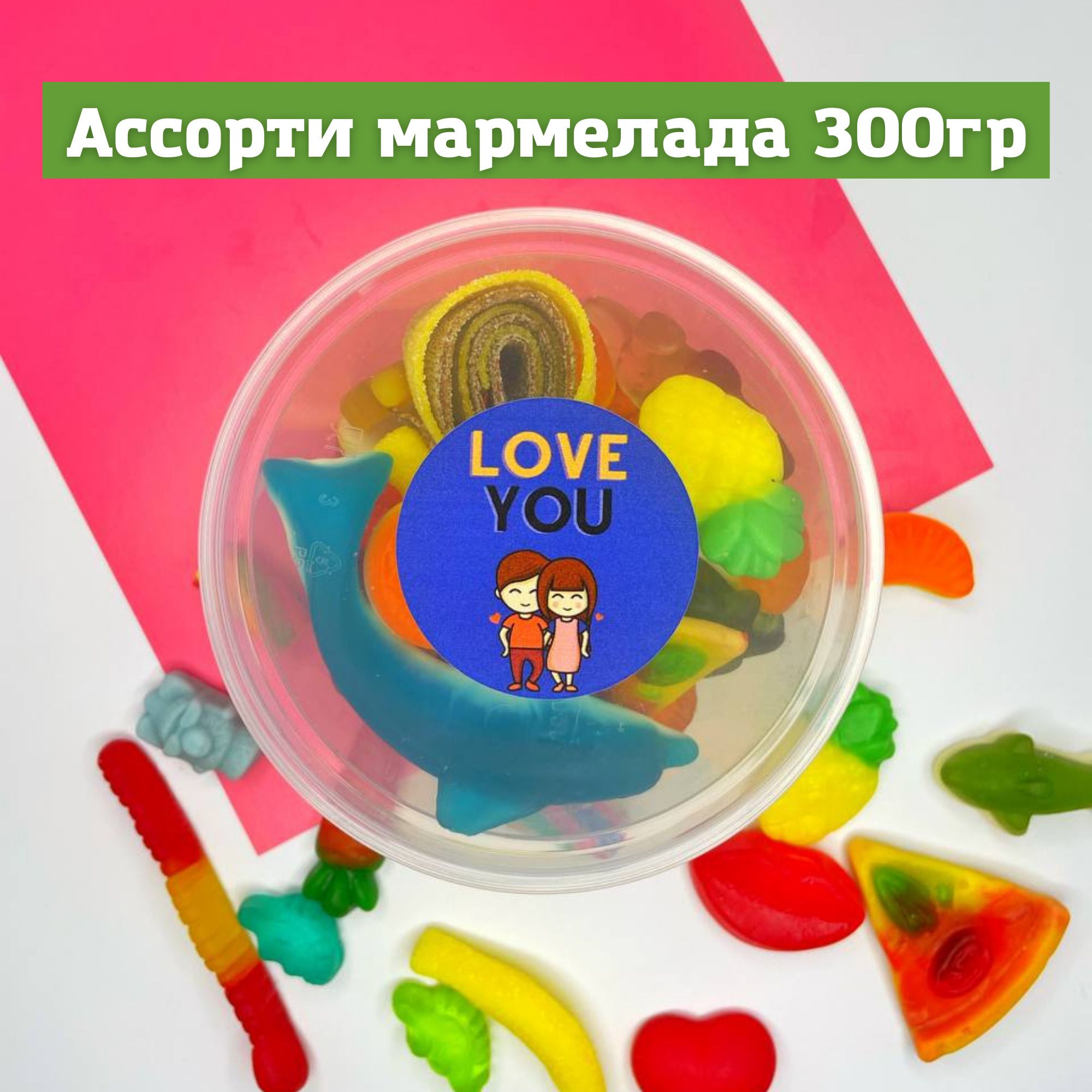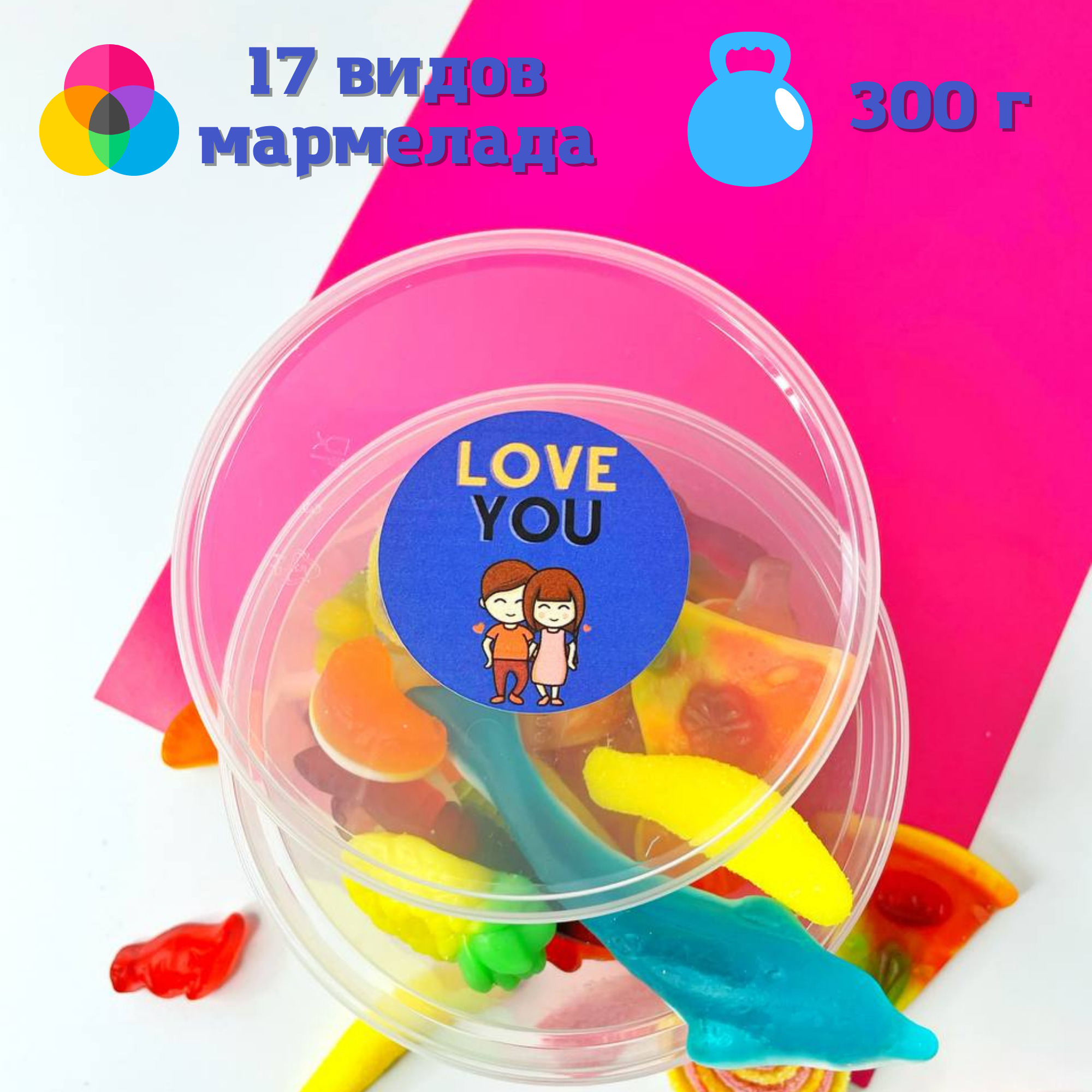 Набор мармелада подарочный. Ассорти мармелада 17 вкусов 300 гр. Стикер Love
