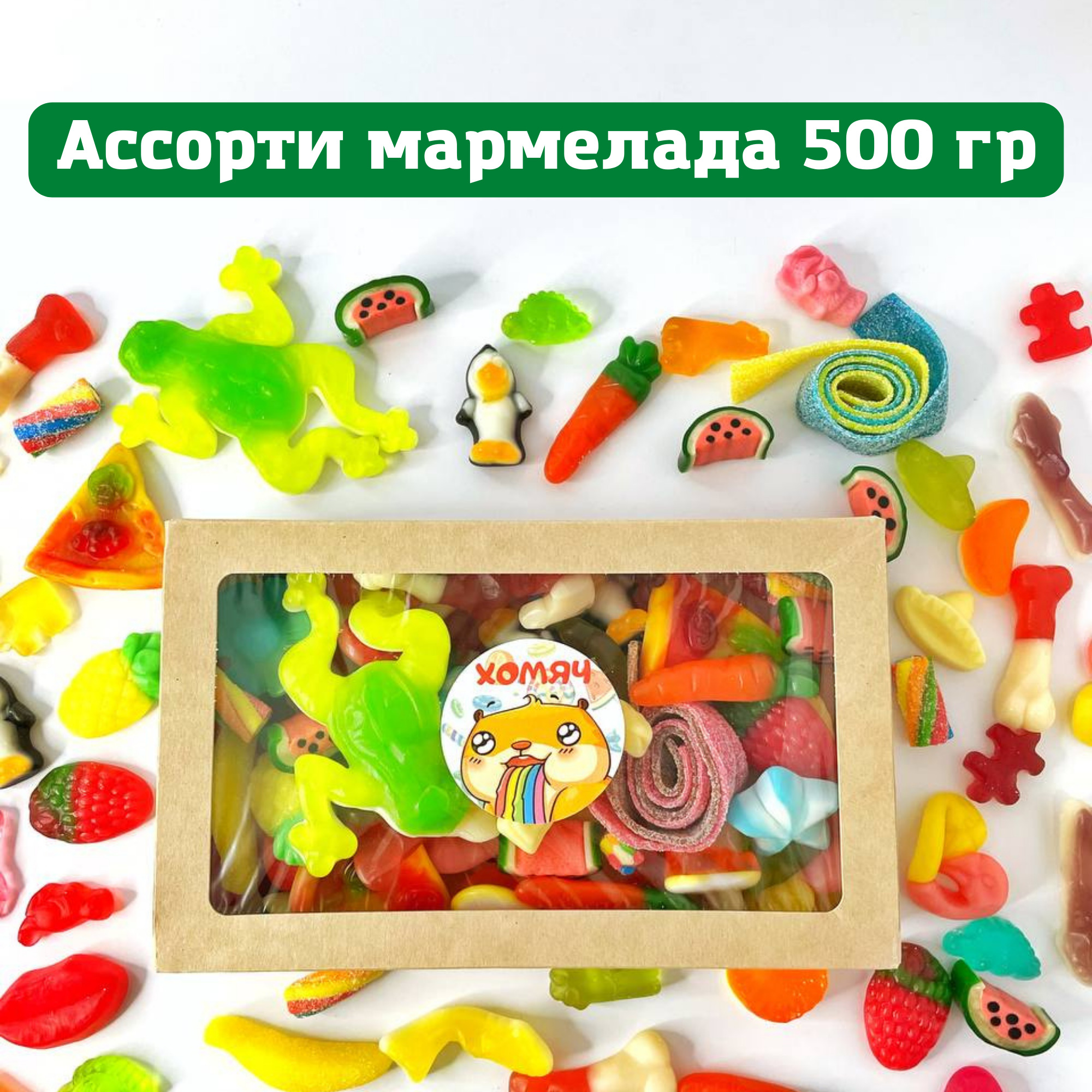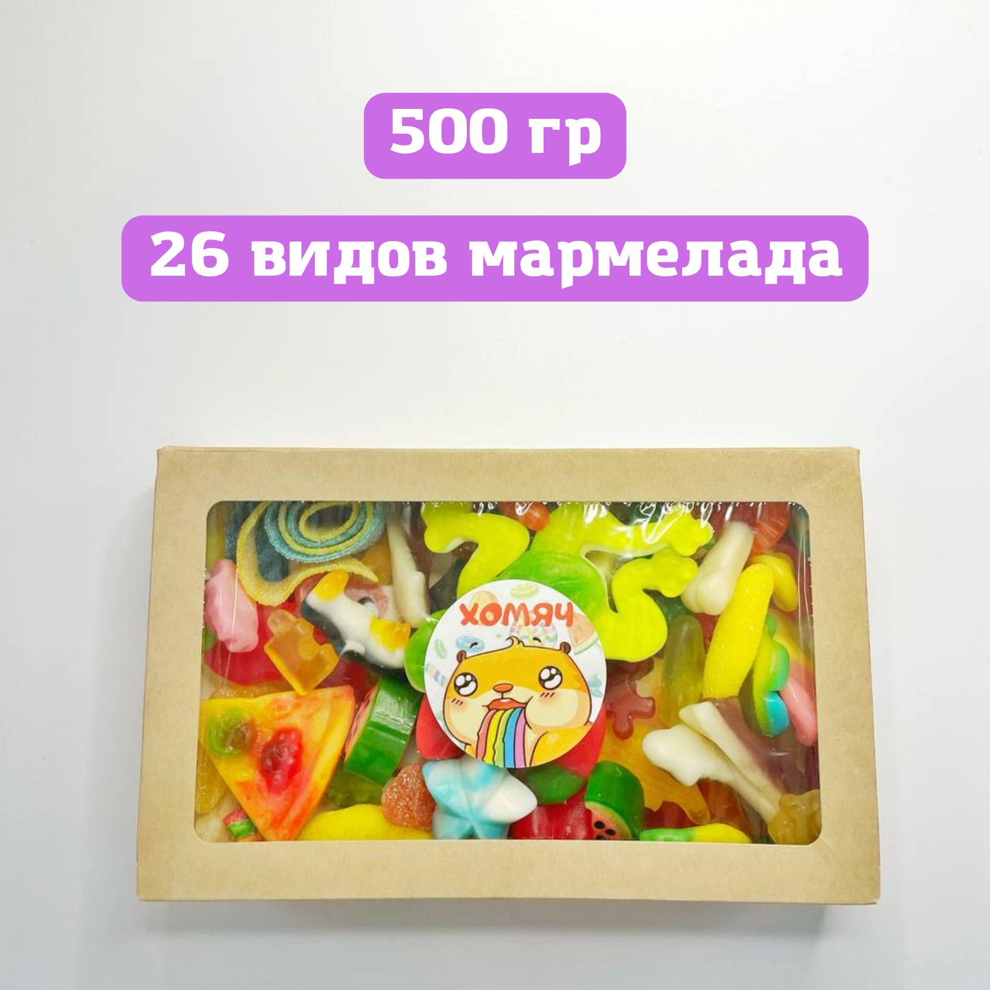 Набор мармелада подарочный. Ассорти мармелада 26 вкусов 500 гр. Стикер Хомяч