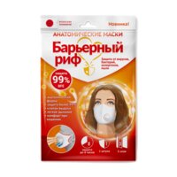 Маски Барьерный риф анатомические медицинские с клапаном белые, 1 шт.