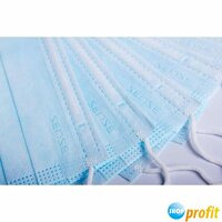 Маска медицинская одноразовая 3-слойная с носовым фиксатором, голубая, на резинках, 50шт.