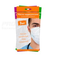 Маска медицинская 3-х слойная голубая п/э СМЗ-50/2500 ПАК 50 шт в упаковке