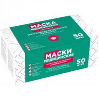 Маска медицинская 3-х слойная белая, 50шт/упак 1 шт.